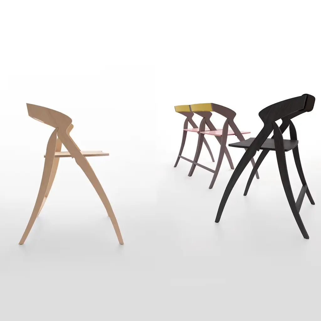 This stunning chair was designed by architect Enrico Davide Bona and introduced at Milan Design Week 2001. Part of the itinerant museum I-Dot-Italian, Design on Tour, this piece traveled to the ICFF in NYC and the NeoCon in Chicago. Its svelte silhouette is crafted of ply beechwood with a natural finish and is inspired by the light movements of a tango, adding elegance to a modern decor. This versatile piece folds, becoming a precious addition in any room, where it can be stored and used when needed or displayed for a dynamic effect.