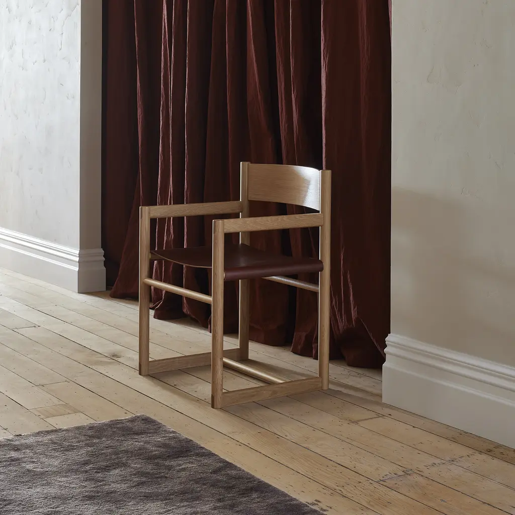A modern take on the original safari chair, the Passenger Chair blends its timber joinery with subtle connection points throughout the frame. Saddle leather offers forgiveness to the seat which will add character and warmth over time. This timeless profile will suit both commercial and residential environments that require a dining chair with arms for further exit support. The arms were designed intentionally slightly lower to allow for location under most tables. Features