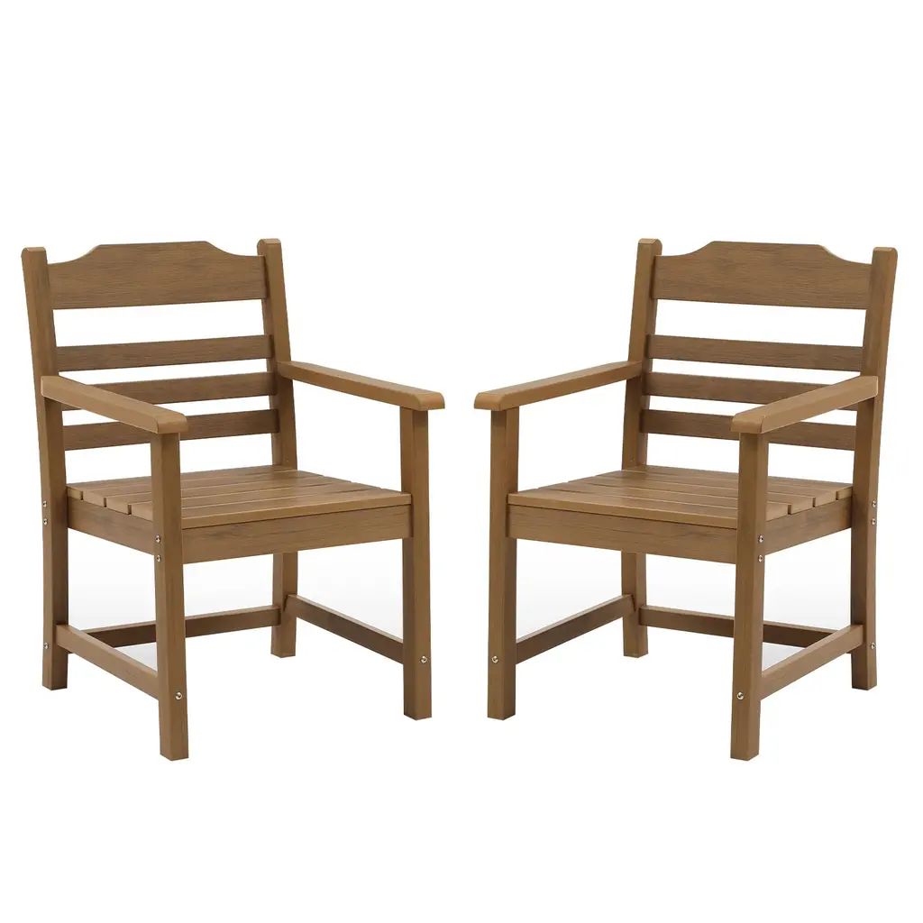 Patio Dining Chair (Set Of 2) Imitation Wood Grain Texture Outdoor Club Chairs, All-Weather Hips Single Chair With Armrest - Light Teak