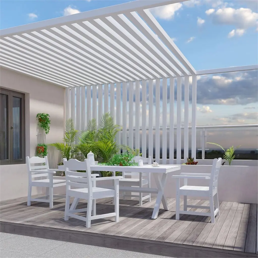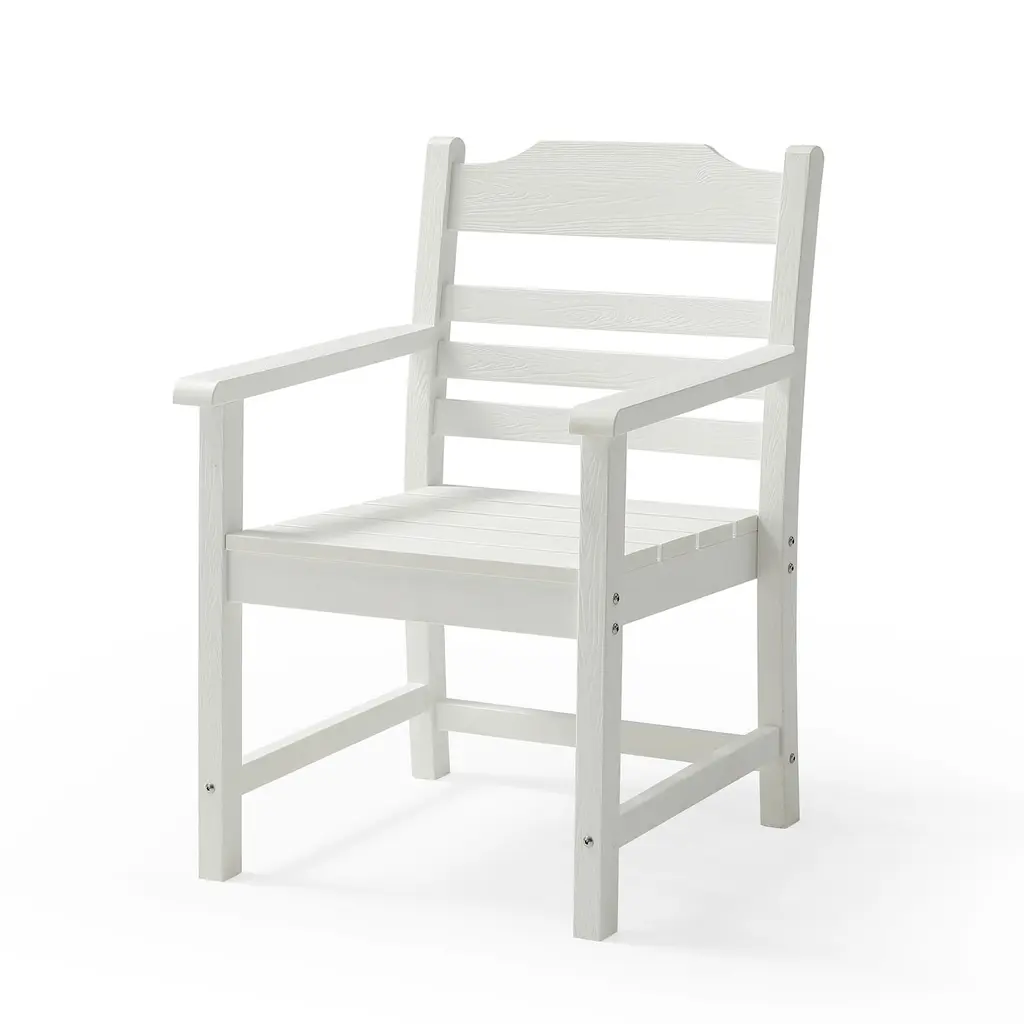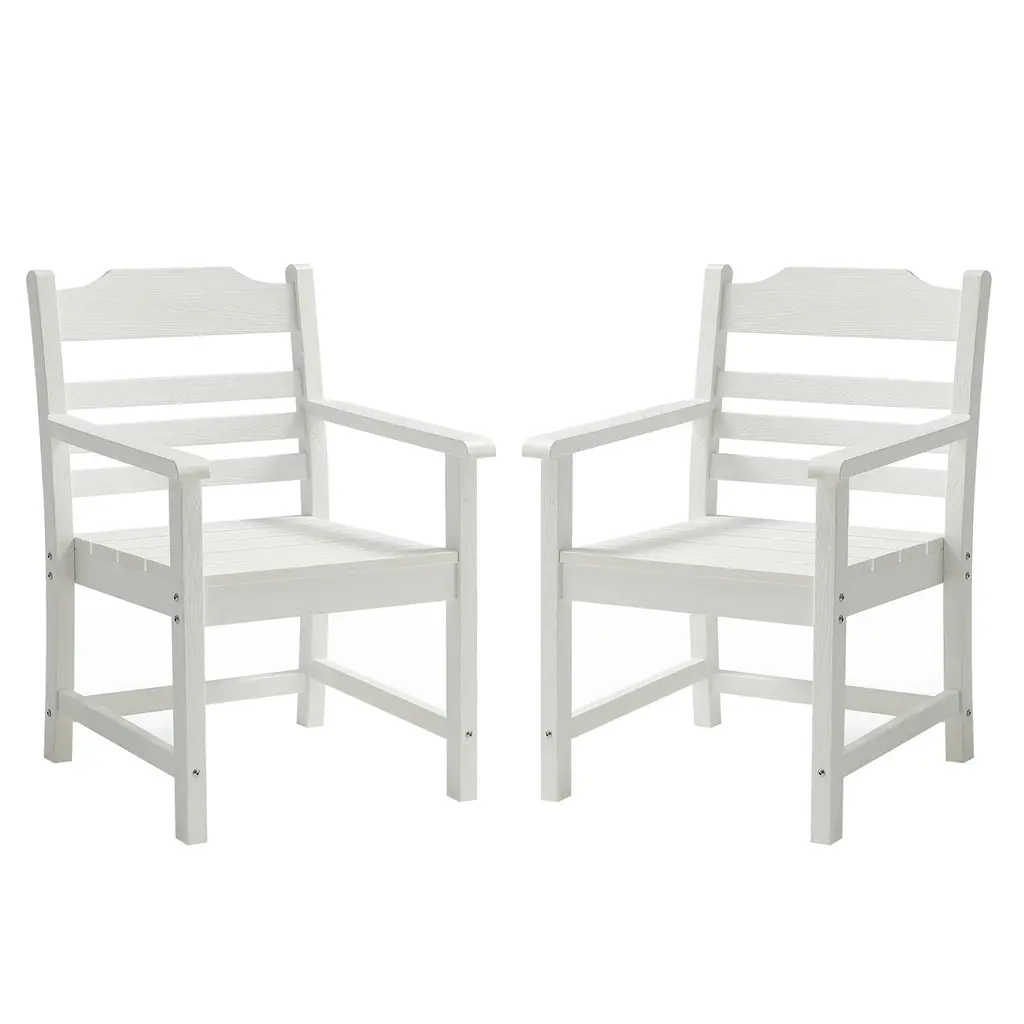 Patio Dining Chair (Set Of 2) Imitation Wood Grain Texture Outdoor Club Chairs, All-Weather Hips Single Chair With Armrest - White