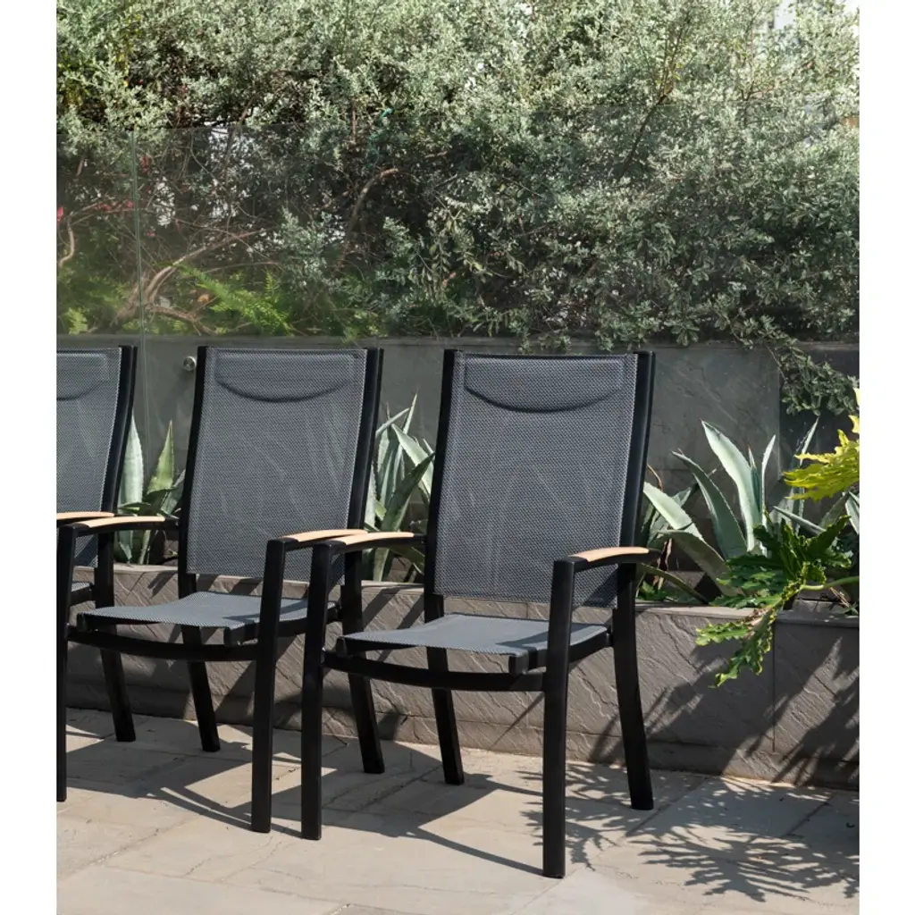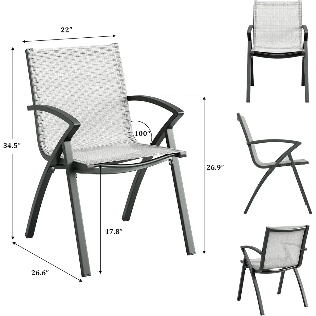 Universally Comfortable Seating: These space-saving chairs (22"D×26.6"W×34.5"H) offer generous dimensions to accommodate most users comfortably, making them ideal for diverse groups and occasions. Ergonomic Camping Chair: Engineered with body-contouring armrests and breathable waterproof mesh seating, this camp chair delivers all-day comfort for outdoor adventures. Space-Saving Stackable Chairs: These patio chairs feature a smart stacking design that minimizes storage footprint when not in use, while maintaining full seating comfort during outdoor gatherings. All-Weather Durability: Crafted with lightweight yet sturdy aluminum frames, each chair can hold up to 300 pounds, this patio dining chair withstands the elements season after season. Designed for reliable, long-lasting outdoor enjoyment through sun, rain, and beyond. Hassle-Free Assembly: This outdoor dining chair requires minimal assembly with included instructions and hardware. Get your patio ready for entertaining in no time with our straightforward setup process.