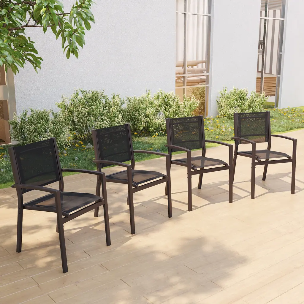 Patio Dining Chairs Set Of 2/4, Outdoor Stackable Chairs With Metal Frame And Backrest - Set Of 4