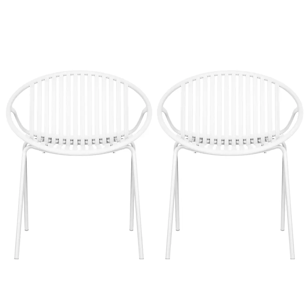 Patio Dining Chairs Stackable Chairs With Breathable Design Modern Simple Art Style (Set Of 2) - White