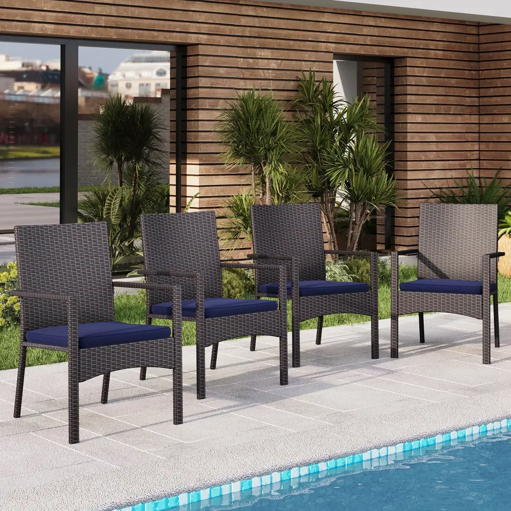 Patio Rattan Chair Set Of 4, Outdoor Modern Pe Wicker Armchair With Removable Cushions - Dark Brown