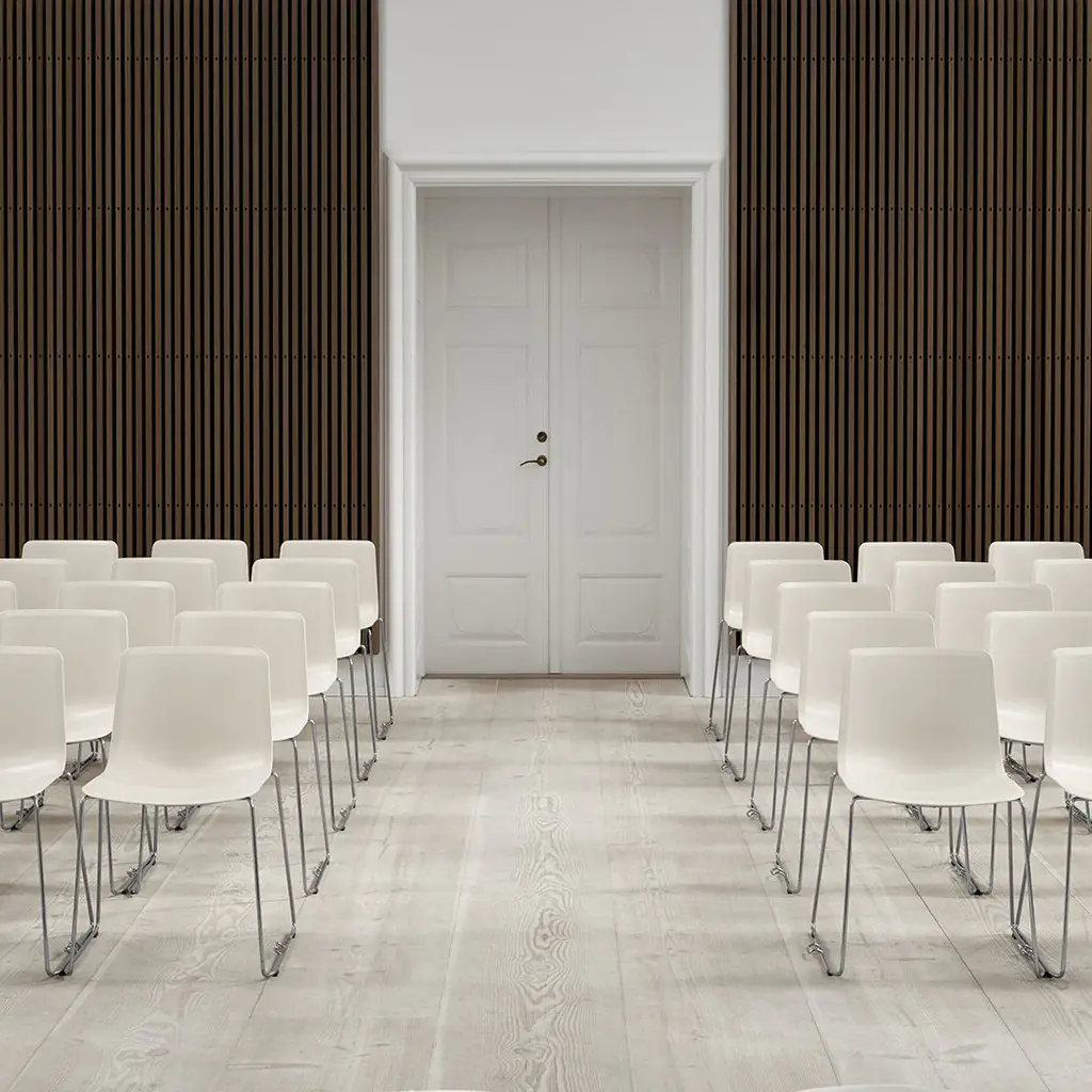 PATO is a versatile furniture series created for today's high demands of functional furniture. With PATO, a new standard is set for the most basic of furniture- The stackable plastic chair. PATO meets FREDERICA's 100 year-old tradition of maximum of crafted quality to industrial products. With the PATO series we have set new standards for how to create a polypropylene chair. The shells have a carefully developed structure with a soft, yet wear and tear resistant, surface. Designers Welling/Ludvik have created a highly intelligent design where functional details add to a distinct expression and sublime usability. PATO's simple shape seems almost obvious at first sight, however the soft, yet tight, visual lines makes it stand out with a tasteful elegance. By adding a bevelled edge, designers Welling/Ludvik apply a technique from the cabinet-makers tradition, which gives the chair a sense of handcrafted finesse, while also adding comfort where the body meets the chair's edge. PATO is produced in environmentally friendly polypropylene and steel and every part is 100% recyclable and renewable. With it's shell designed in Denmark and all other assembly in Denmark as well every chair is fully quality controlled during all stages of the manufacturing process. The chair is tested for durability at the Danish Technological institute and passes at the highest level (Hard use in public spaces). Stackable: 18 pcs. On Floor 25 pcs. On Trolley