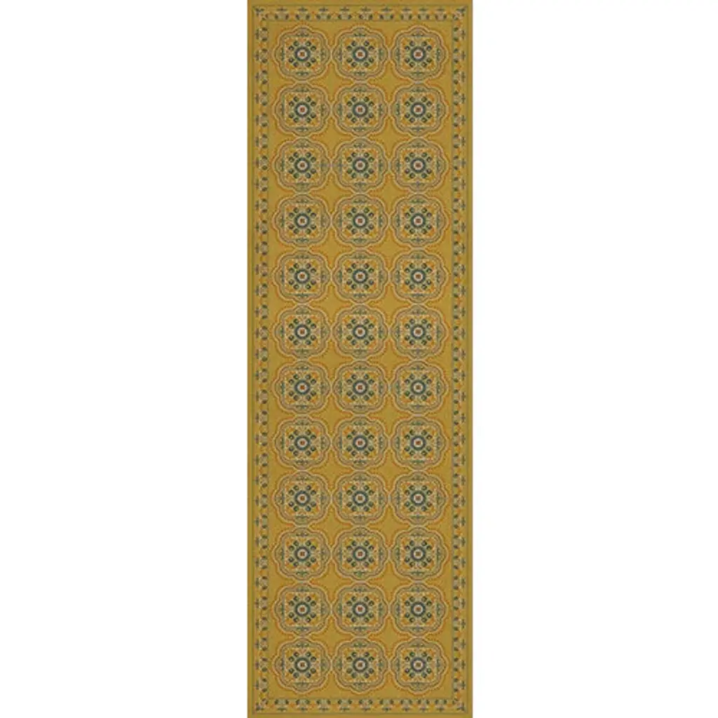 Inspired by old floor mats and vintage linoleum, these vibrant vinyl floor cloths offer warm colors with beautiful aged characteristic. Their worn appeal makes them great in kitchens and baths, while the smooth surface is perfect in an office where rolling chairs can glide. The cloths can be used in controlled outdoor settings such as a screened-in porch or covered lanai. These wonderful designs are printed on durable, certified non-slip, lay-flat vinyl. Due to their mastered printing process please expect some variation in hue and saturation. With a wide range of color combinations and sizes to choose from, enjoy picking your favorites to dress up your floor.