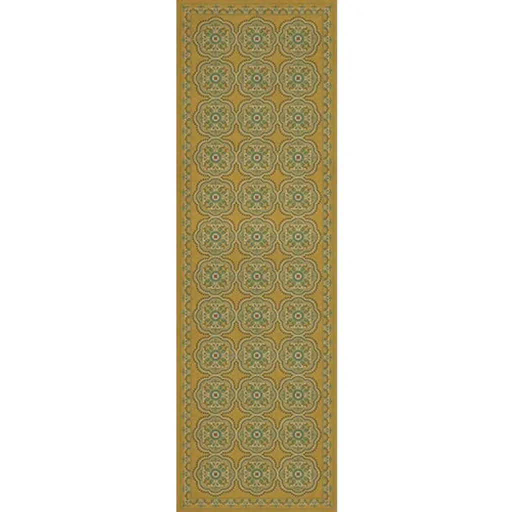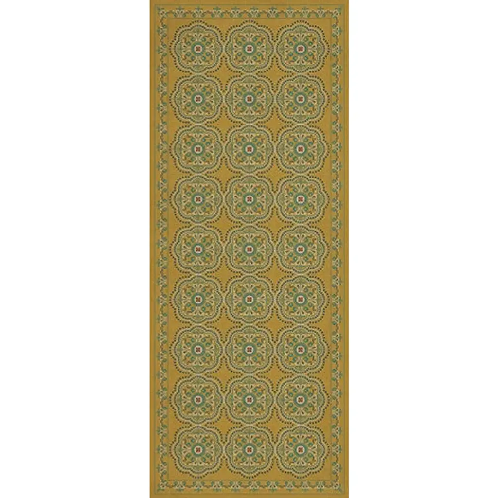 Inspired by old floor mats and vintage linoleum, these vibrant vinyl floor cloths offer warm colors with beautiful aged characteristic. Their worn appeal makes them great in kitchens and baths, while the smooth surface is perfect in an office where rolling chairs can glide. The cloths can be used in controlled outdoor settings such as a screened-in porch or covered lanai. These wonderful designs are printed on durable, certified non-slip, lay-flat vinyl. Due to their mastered printing process please expect some variation in hue and saturation. With a wide range of color combinations and sizes to choose from, enjoy picking your favorites to dress up your floor.