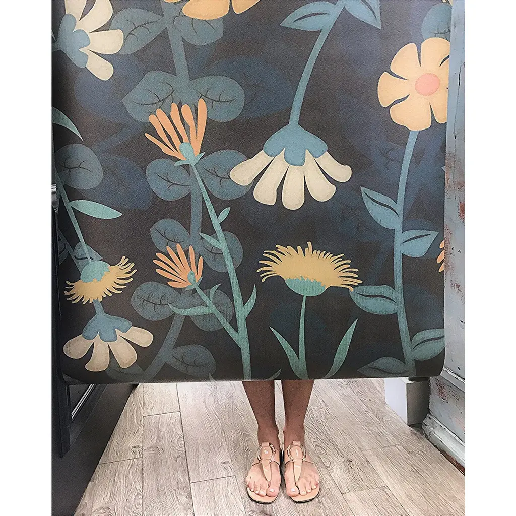 Like a field of wildflowers peeking out of a night time garden, the Knee Deep in Flowers vinyl floor mat offers an uplifting spirit to a space. Inspired by old floor mats and vintage linoleum, these vibrant vinyl floor cloths offer warm colors with beautiful aged characteristic. Their worn appeal makes them great in kitchens and baths, while the smooth surface is perfect in an office where rolling chairs can glide. And don't forget a playroom ... easy to clean. The cloths can be used in controlled outdoor settings such as a screened-in porch or covered lanai. These wonderful designs are printed on durable, certified non-slip, lay-flat vinyl. Due to their mastered printing process please expect some variation in hue and saturation. With a wide range of color combinations and sizes to choose from, enjoy picking your favorites to dress up your floor.