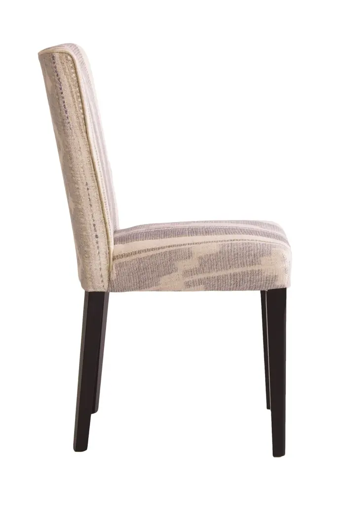 This smart dining chair boasts a sleek and simple silhouette, with a tall backrest for additional comfort and grounded by dark wenge legs. This piece has been upholstered in our rustic Indus Brick fabric which introduces a subtle element of pattern into your space.