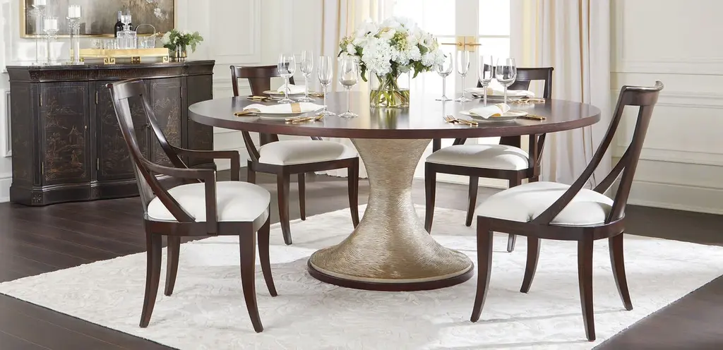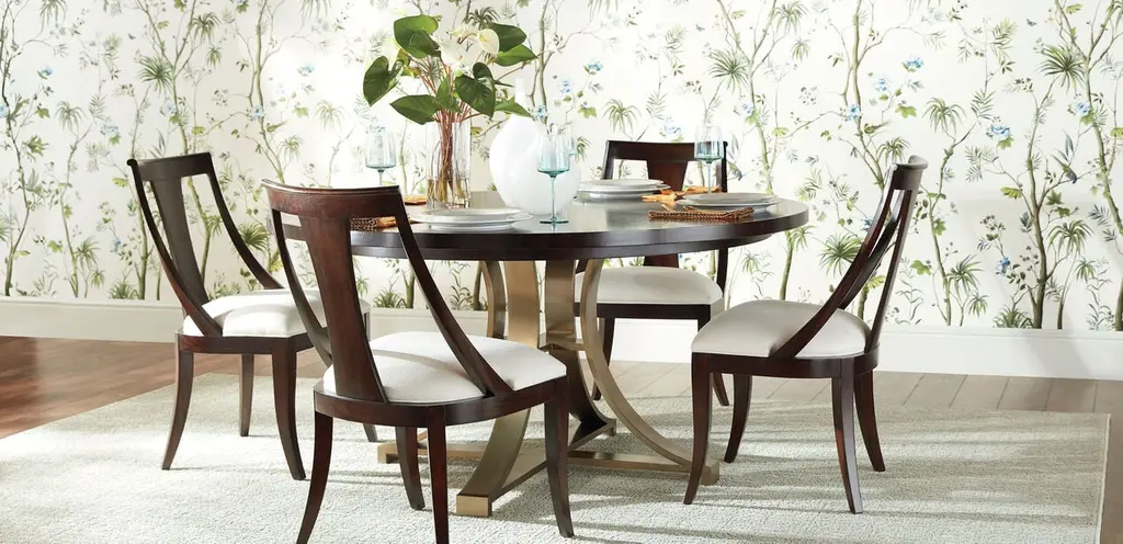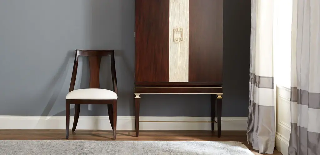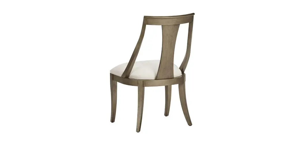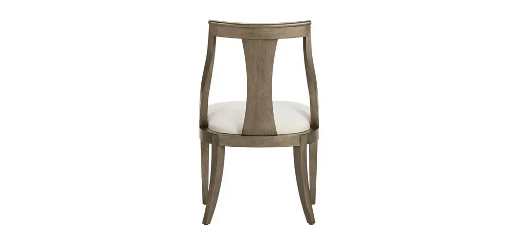 Hollywood Regency styling, simplified for today's spaces. The Paulson dining side chair has a distinctively curved silhouette, but the center splat is simple, almost linear, keeping the style transitional. A comfortable yet elegant tailored seat, and a sophisticated scroll along the top complete the luxe look. Select your favorite fabric or leather, and your wood finish.