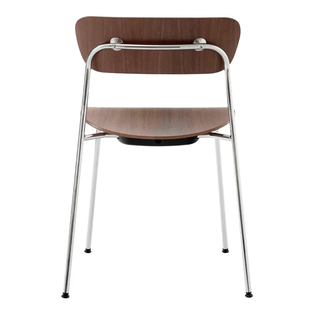 Stackable Chair: With Trolley: 12 pcs. Without Trolley: 10 pcs. Located on the castle grounds of Copenhagen's Kastellet overlooking the waterfront promenade that is home to the Little Mermaid, The Langelinie Pavilion stands with a resilient spirit. The first Pavilion was built in 1885. The second was built in 1902 for the Royal Danish Yacht Club but was sadly destroyed during World War II. The current Pavilion was built 1958 by architect couple Eva and Niel's Koppel in homage to modernism. Echoing its own ability to endure is the Pavilion chair by Andersen & Voll. Here the challenge was to design a stackable chair used for mass seating in this iconic, multi-purpose venue, the Langelinie Pavilion. Torbjørn Anderssen and Espen Voll wanted to link early modernism with new modernism. "Often tube chairs are constructed at fixed angles," notes Anderssen. "We wanted a freer form of expression and explored the idea of bent tubing teamed with bent plywood." "The Pavilion chair has an airy feeling, with slim arms and legs that give it a light appearance," explains Voll. "A softer aesthetic in a curvaceous silhouette that's barely there." The effect is lyrical, graceful and poetic. Almost like a tied rope that has come undone. Brass fittings are available upon request.