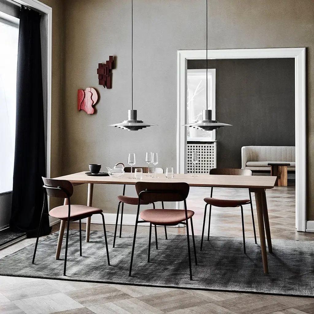 Stackable Chair: With Trolley: 10 pcs. Without Trolley: 8 pcs. Located on the castle grounds of Copenhagen's Kastellet overlooking the waterfront promenade that is home to the Little Mermaid, The Langelinie Pavilion stands with a resilient spirit. The first Pavilion was built in 1885. The second was built in 1902 for the Royal Danish Yacht Club but was sadly destroyed during World War II. The current Pavilion was built 1958 by architect couple Eva and Niel s Koppel in homage to modernism. Echoing its own ability to endure is the Pavilion chair by Andersen & Voll. Here the challenge was to design a stackable chair used for mass seating in this iconic, multi-purpose venue, the Langelinie Pavilion. Torbjørn Anderssen and Espen Voll wanted to link early modernism with new modernism. "Often tube chairs are constructed at fixed angles," notes Anderssen. "We wanted a freer form of expression and explored the idea of bent tubing teamed with bent plywood." "The Pavilion chair has an airy feeling, with slim arms and legs that give it a light appearance," explains Voll. "A softer aesthetic in a curvaceous silhouette that's barely there." The effect is lyrical, graceful and poetic. Almost like a tied rope that has come undone. Brass fittings are available upon request.
