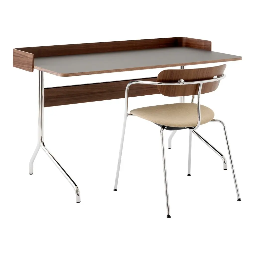 Stackable Chair: With Trolley: 10 pcs. Without Trolley: 8 pcs. Located on the castle grounds of Copenhagen's Kastellet overlooking the waterfront promenade that is home to the Little Mermaid, The Langelinie Pavilion stands with a resilient spirit. The first Pavilion was built in 1885. The second was built in 1902 for the Royal Danish Yacht Club but was sadly destroyed during World War II. The current Pavilion was built 1958 by architect couple Eva and Niel's Koppel in homage to modernism. Echoing its own ability to endure is the Pavilion chair by Andersen & Voll. Here the challenge was to design a stackable chair used for mass seating in this iconic, multi-purpose venue, the Langelinie Pavilion. Torbjørn Anderssen and Espen Voll wanted to link early modernism with new modernism. "Often tube chairs are constructed at fixed angles," notes Anderssen. "We wanted a freer form of expression and explored the idea of bent tubing teamed with bent plywood." "The Pavilion chair has an airy feeling, with slim arms and legs that give it a light appearance," explains Voll. "A softer aesthetic in a curvaceous silhouette that's barely there." The effect is lyrical, graceful and poetic. Almost like a tied rope that has come undone. Brass fittings are available upon request.
