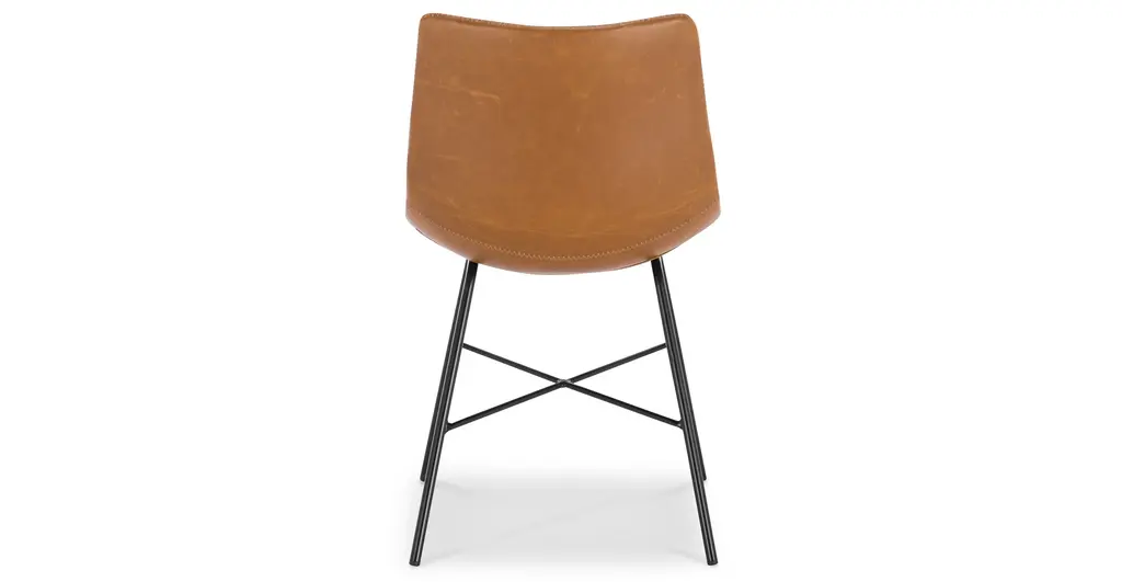 Subtle curves and modern lines merge, infusing this dining chair and your space with undeniable sophistication. The upholstered textured high durability leatherette complements any decor style, and its gently scooped seat is outlined in eye-catching luxe reinforced saddle stitching detail. Stunningly sturdy, this dining chair features a welded steel base and steel legs in a matte black powder coating. Long-lasting and oh-so charming, it’s the perfect addition to your home dining area or breakfast nook.