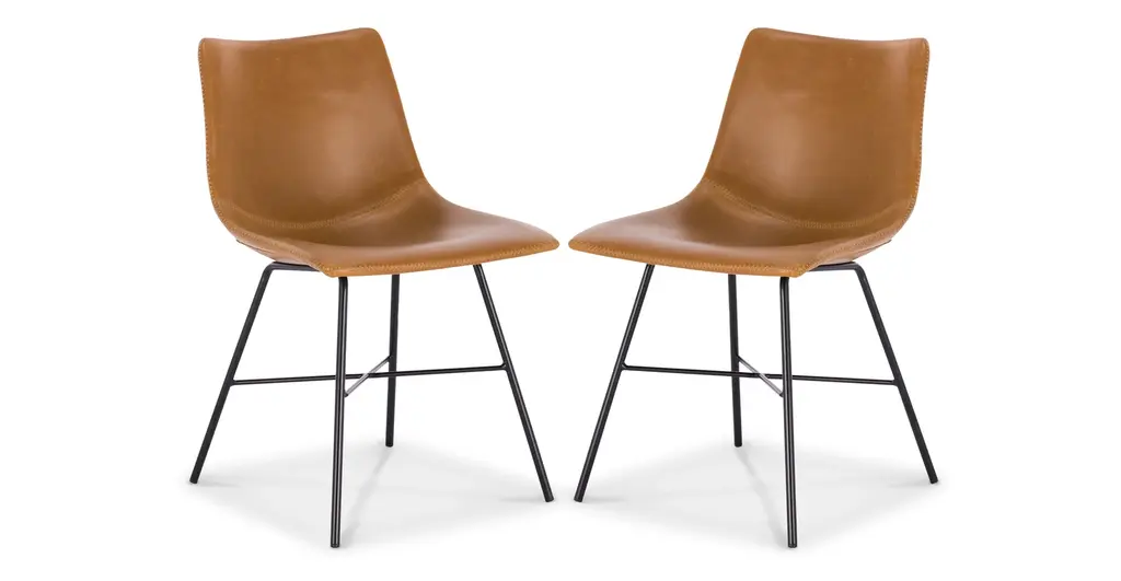 Subtle curves and modern lines merge, infusing this dining chair and your space with undeniable sophistication. The upholstered textured high durability leatherette complements any decor style, and its gently scooped seat is outlined in eye-catching luxe reinforced saddle stitching detail. Stunningly sturdy, this dining chair features a welded steel base and steel legs in a matte black powder coating. Long-lasting and oh-so charming, it’s the perfect addition to your home dining area or breakfast nook.