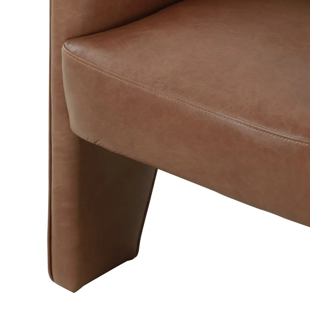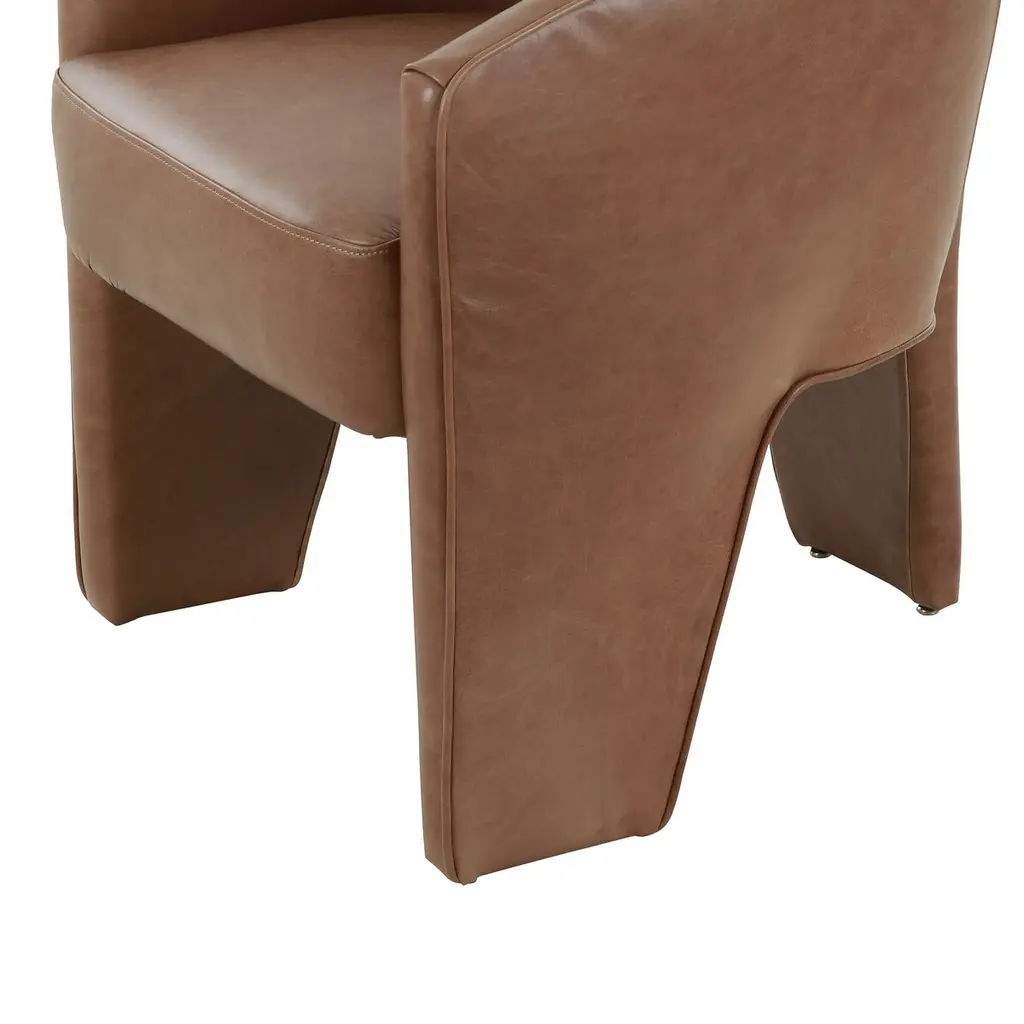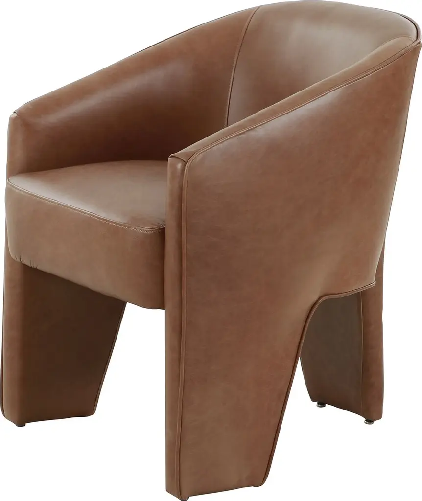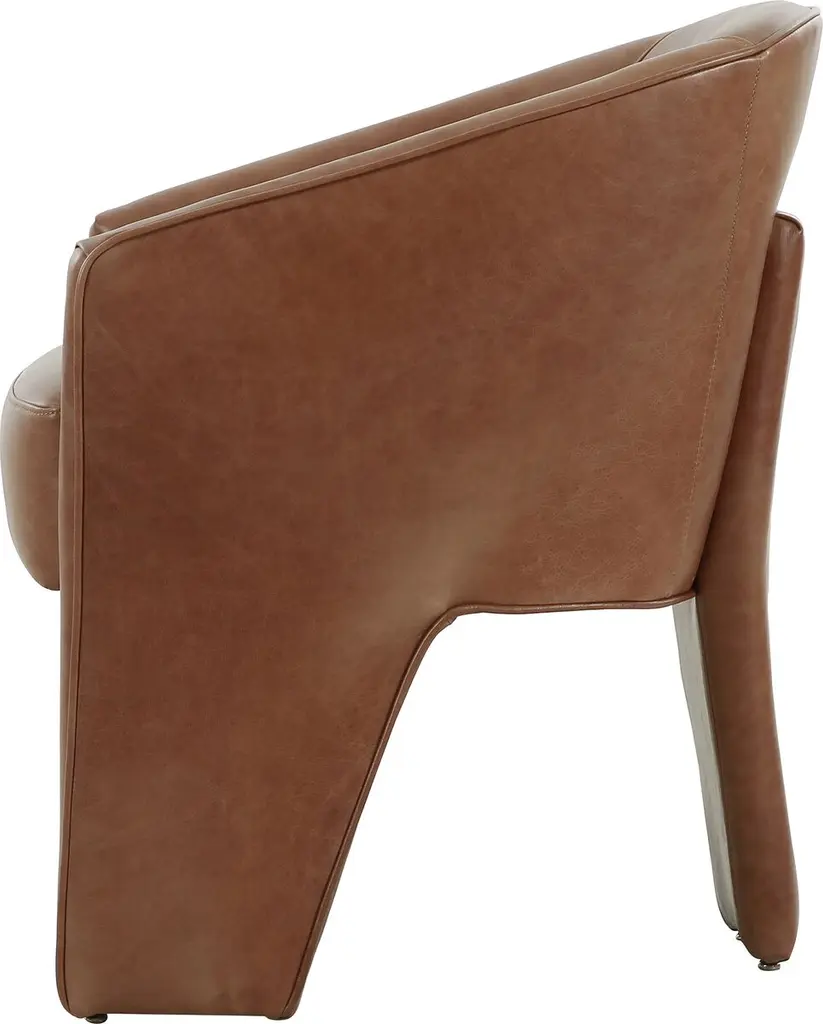 Thick-cut top-grain leather upholstery accentuates the striking silhouette of this three-leg dining chair. The curved back, generous padding, and webbed seat construction will encourage lingering at the table long after the meal is over.