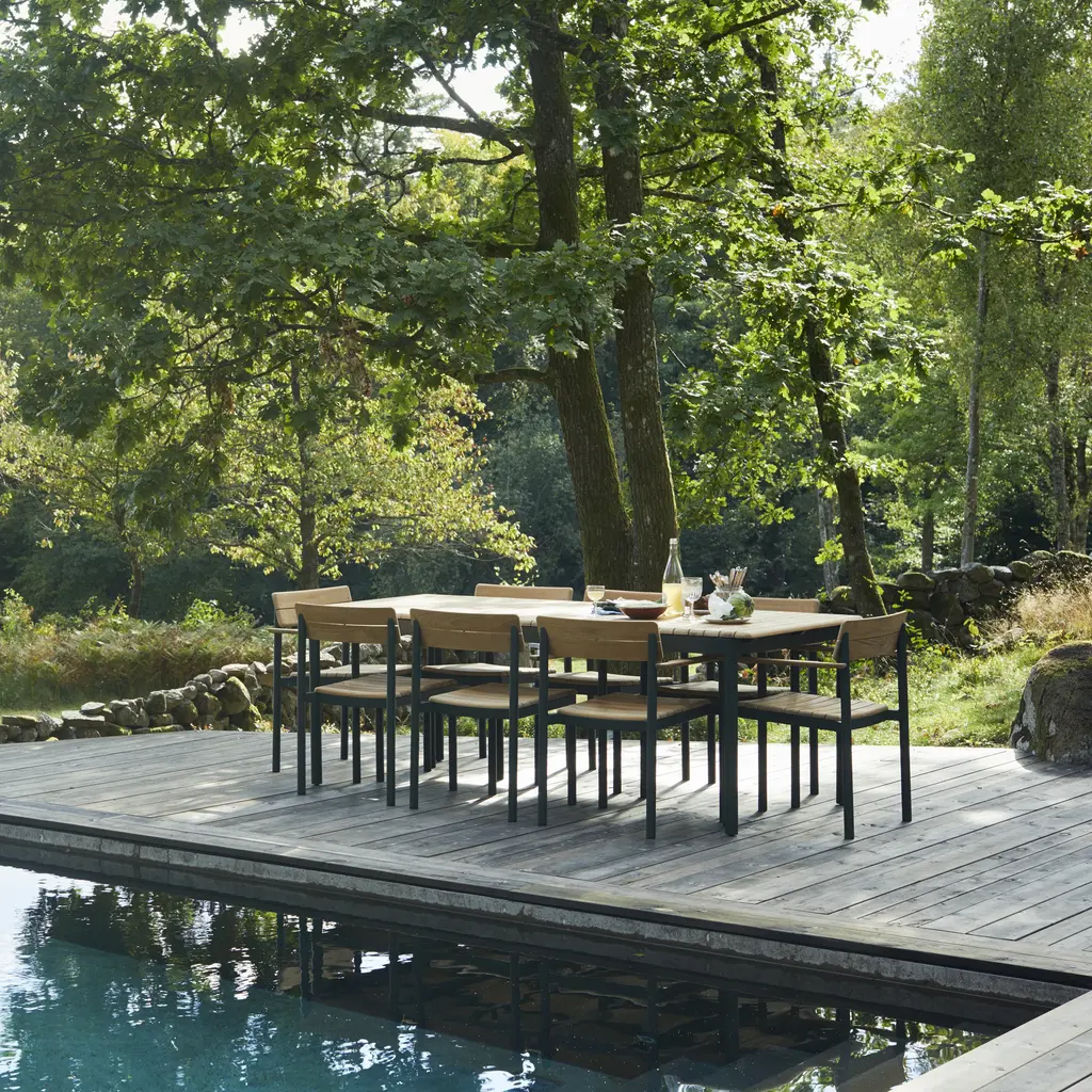 A simple, yet sophisticated design perfect for backyard dinner parties and poolside patios alike, the Pelagus Outdoor Dining Chair from the Skagerak Collection by Fritz Hansen brings Nordic flair to any space in your home. Crafted from FSC-certified teak wood atop a powder-coated aluminum frame, this timeless chair is naturally weather and rot-resistant. When not in use, this chair is stackable up to 5 high for easy and effortless storage. Highlights