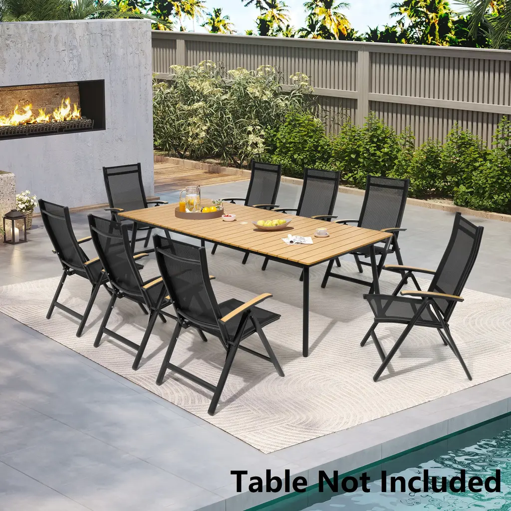Pellebant Patio Folding Chairs Camping Deck Garden Aluminum Dining Chair - 23.6 In W * 16.9 In D * 42.1 In H - Black - 8Pcs