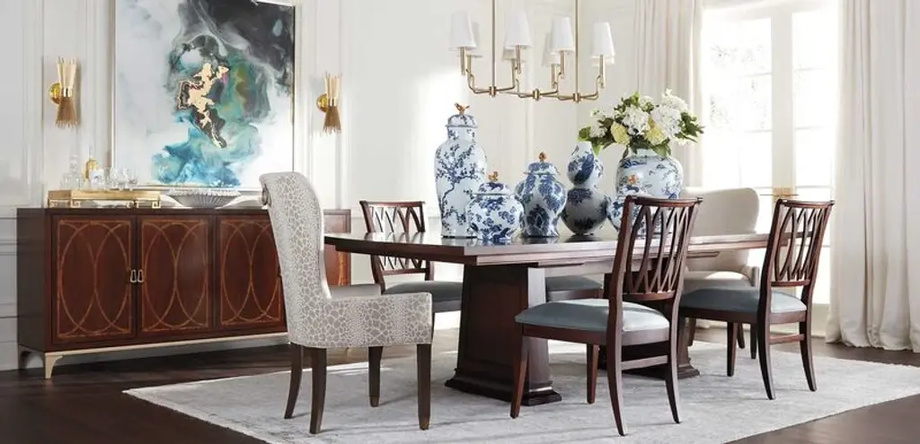 Both modern and classically familiar at the same time, Penelope's art deco styling is evident in its sinuous curved back and seat. This mid-size dining chair's balloon-shaped back forms an elegant silhouette. Also see Penelope side chair (202089).