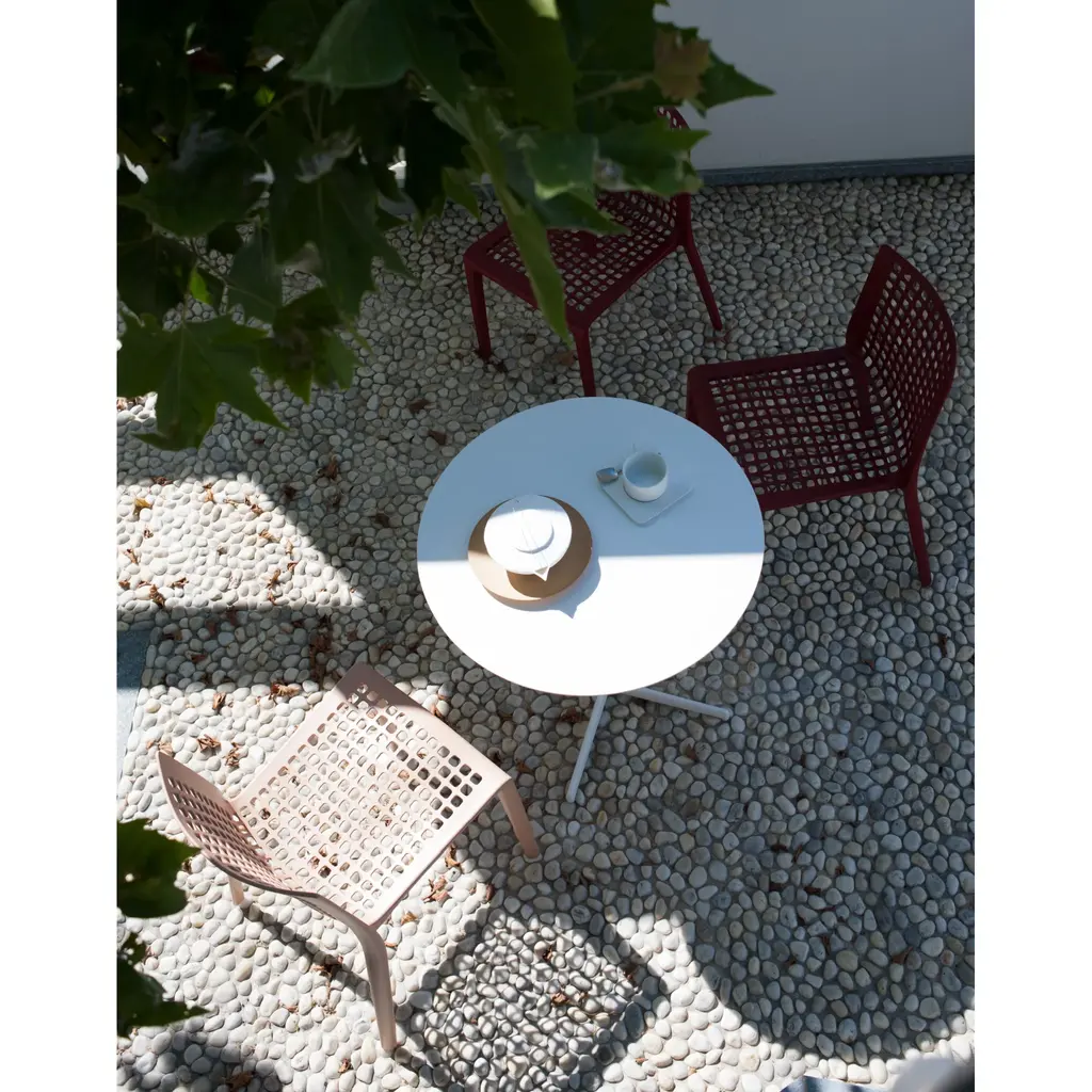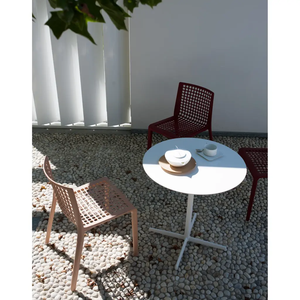 Elevate your outdoor space with the sculpted and functional "288" chair by Desalto. Featuring 288 perforations for a lightweight yet robust design, this chair offers comfort and versatility in a range of attractive colors. Made with high-quality nylon, it's perfect for any environment, from home to office. Experience uncompromising luxury.