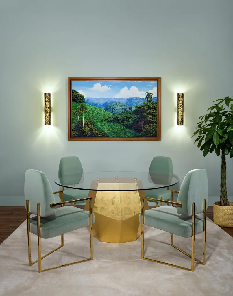 Our perception of space is influenced by perspective. The Perspective II dining chair is an exercise that gathers both two and three dimensions in one single object.As if we were looking to its own drawing, the lines of the minimalist dining chair perform an inflection and visually appear as converging in order to give the illusion of depth. An intentional way of having the flat image of the drawing transported to the object and not the other way around.Entirely handcrafted, the Perspective II dining chair gathers the best of Portuguese contemporary design with the ancient techniques applied by InsidherLand team of talented Portuguese artisans.Product detailsMetal: handcrafted structure in stainless steel finished with golden bath.Upholstery: the price shown refers to the piece without any fabric (the client must provide it). If you're looking for the price of the piece with the fabric shown on the image, please search the product name without the "COM".COM: 1.5m 58.99in. (Standard width 140cm 55in.)Product optionsMetal: under request.Upholstery: Client's Own Material.Weight:9Kg 19.9 lbsMade to order. Custom sizes and other finishes are available under request.Designed by Joana Santos Barbosa, 2016. Handmade in Portugal.