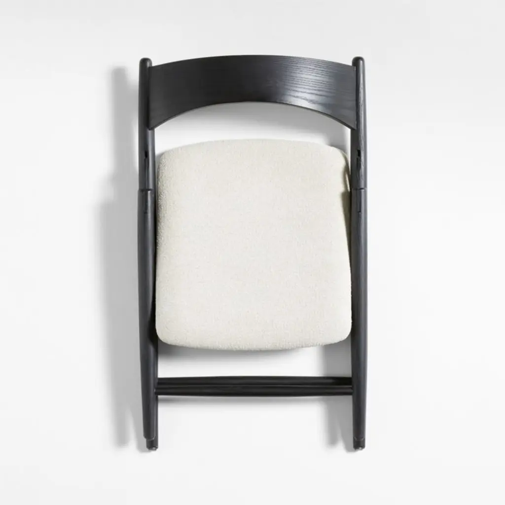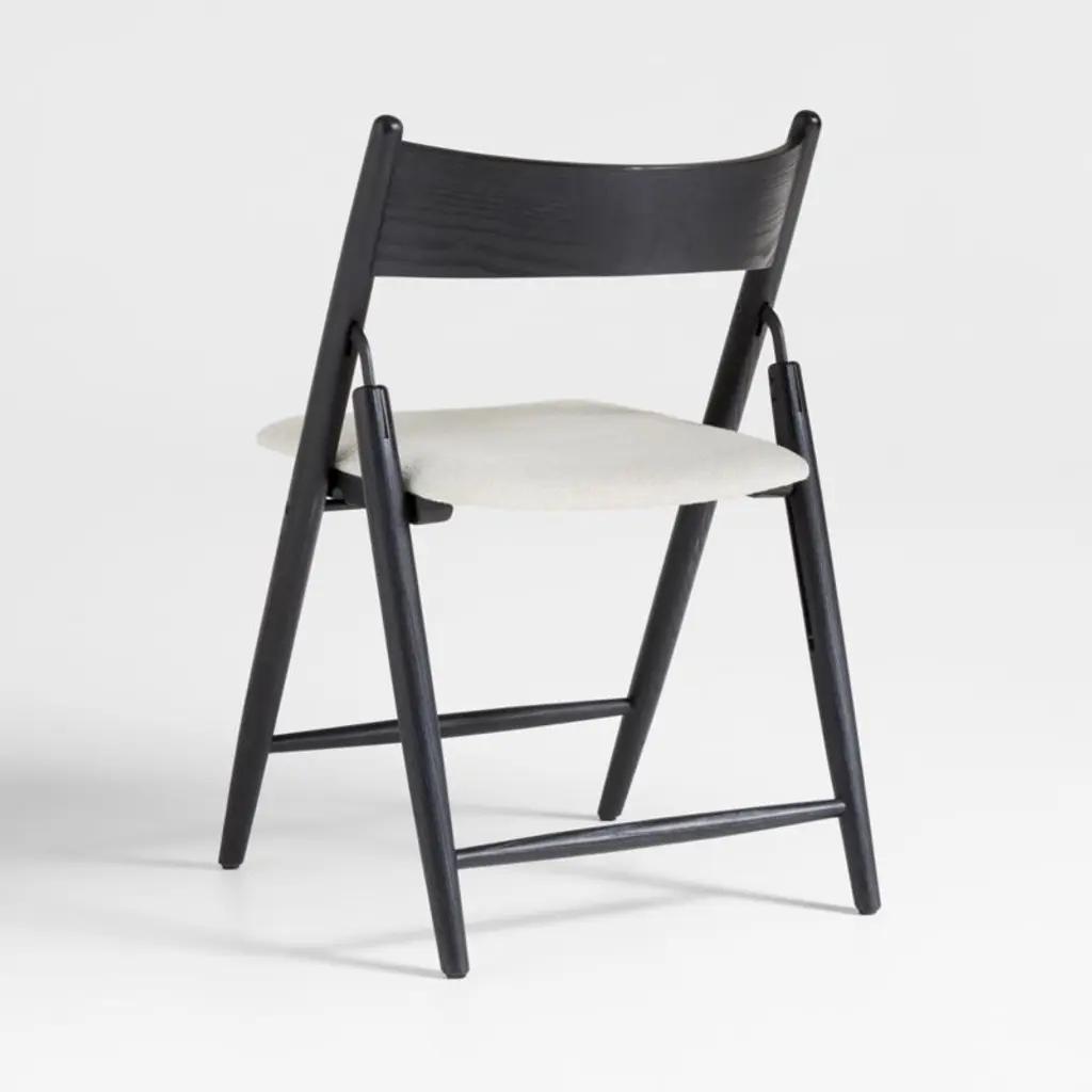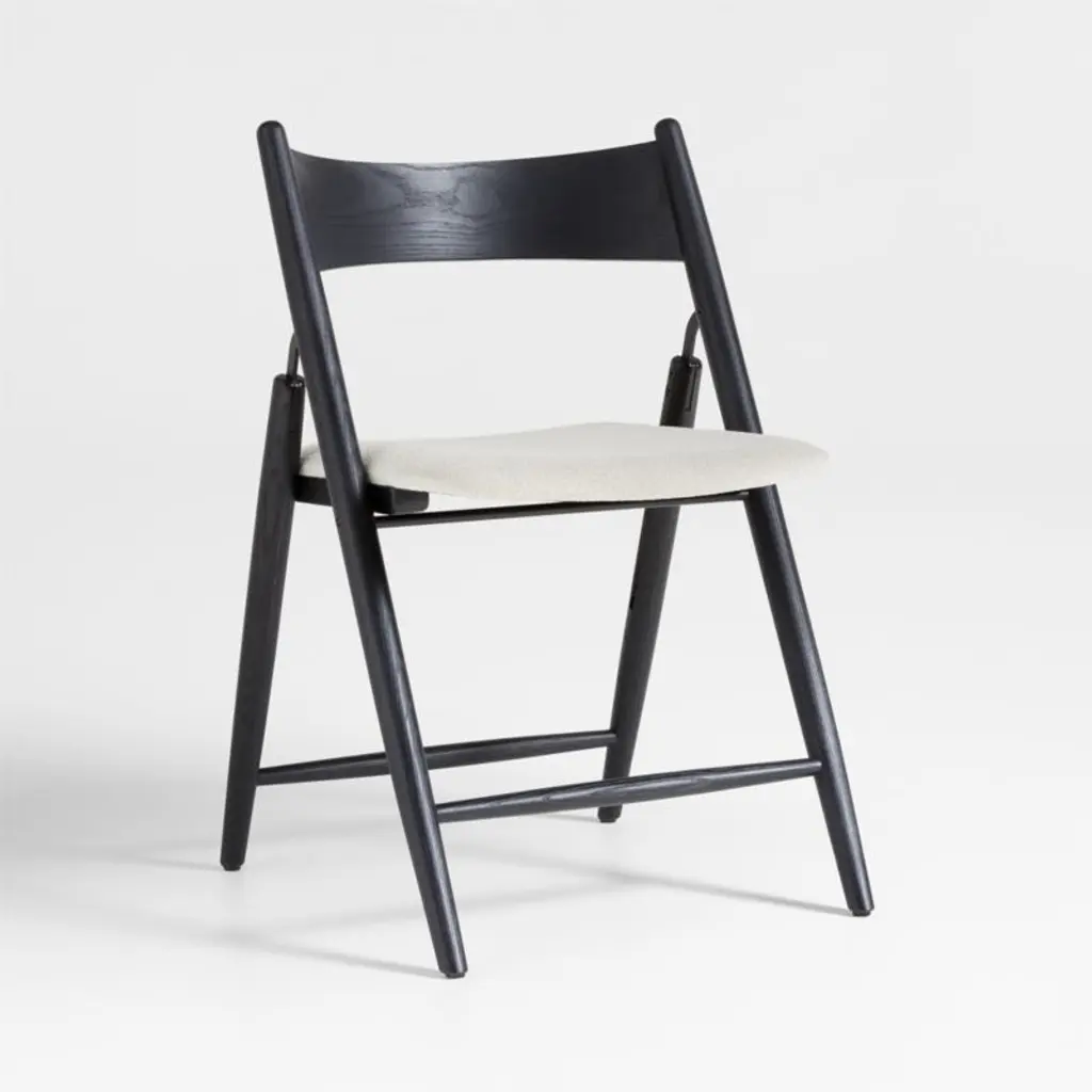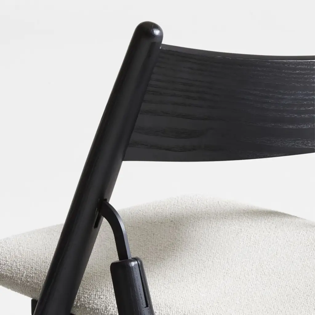 Taking mid-century modern style cues from our bestselling collection, this new member of the Petrie family brings a new level of sophistication to the folding chair. Made of solid ash, the dining chair showcases a barrel-curved backrest and takes an angled stance with subtly tapered turned legs. The white cushioned seat contrasts beautifully with the frame's black finish, ensuring a comfortable stay. Easy to store, the chair unfolds effortlessly to accommodate extra guests at the table or provide seating in the living room for casual get-togethers.