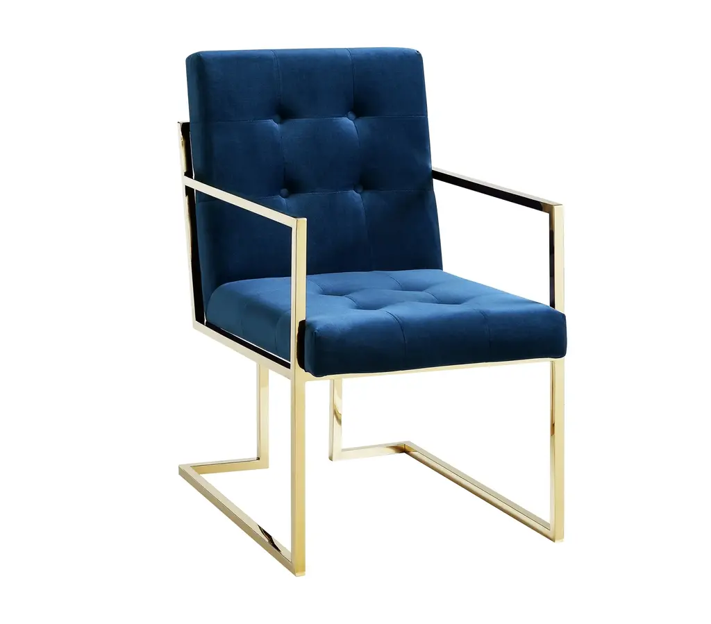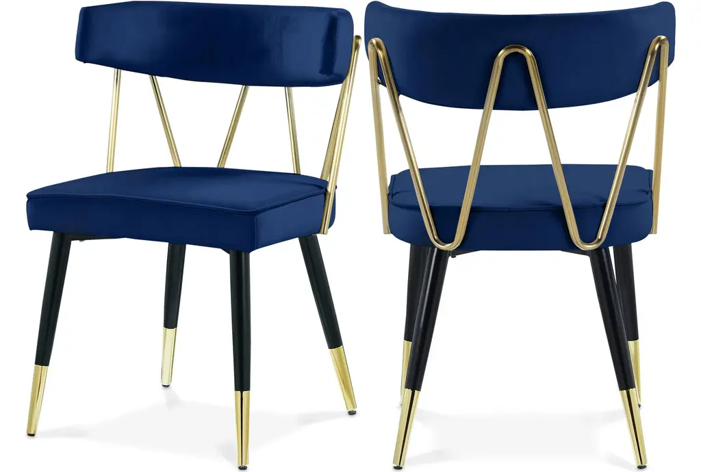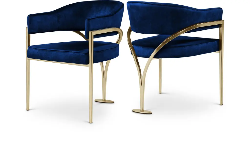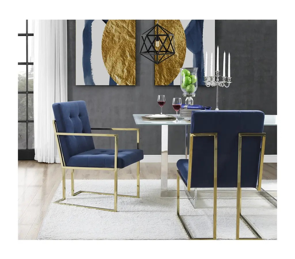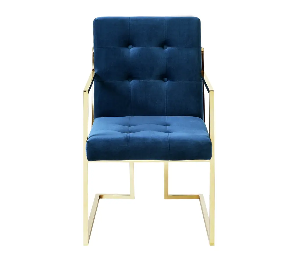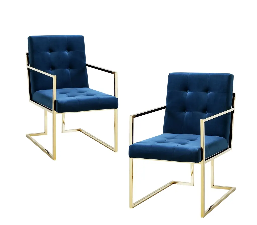 Phoebe Tufted Dining Chairs With Square Arms, Set Of 2, Navy Velvet