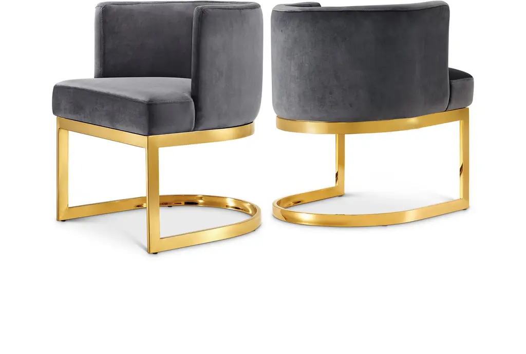 Our trendy dining chairs in set of 2 add stylish intrigue to your dining room and kitchen area. These beautifully upholstered dining chairs create a warm, inviting seating option. Add an aura of sophistication to your dining room with its alluring comfort and bold, luxurious style.FEATURES:MODERN DESIGN - Elegant design match perfectly with any decor themeBUTTON TUFTED - Button tufted for exceptional comfortSET OF 2 - Sold as a set of 2 matching chairsGLAM UPHOLSTERY - Upholstered with grey velvet fabricOVERALL DIMENSION: 27.2"L X 20.9"W X 36.3"HQUALITY - High density foam & sturdy metal frameCARE - Spot clean only. Wipe with dry cloth.EASY ASSEMBLY INSTRUCTIONS - Stress free assembly and easy-to-follow directionsSPECIFICATIONS:DIMENSIONS: 27.2L x 20.9W x 36.3HFABRIC & MATERIALS: Velvet, Steel, Foam,ATTRIBUTES: Button Tufted, Square Arm, Chrome FrameINTENDED ROOMS: Dining Room, Kitchen, OfficeSTYLE: Modern, Contemporary, Elegant, Stylish,WEIGHT CAPACITY: 264ASSEMBLY REQUIRED: YesAbout the company: Inspired Home Co. provides modern casual, on-trend occasional furniture, ottomans, benches, fabric headboards and beds, side tables, dining chairs, barstools, accent chairs, accent tables and sofas. Inspired Home is known for providing fashion forward designs, quality home furnishings at affordable prices. Disclaimer: The digital images we display have the most accurate color possible. However, due to differences in computer monitors, we cannot be responsible for variations in color between the actual product and your screen.