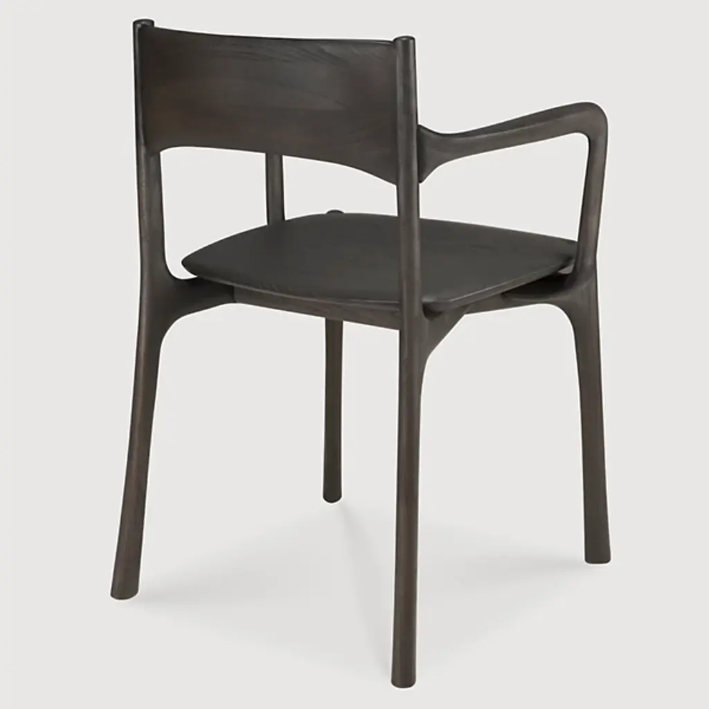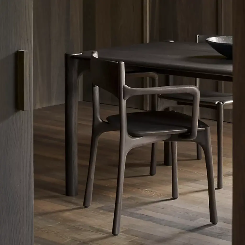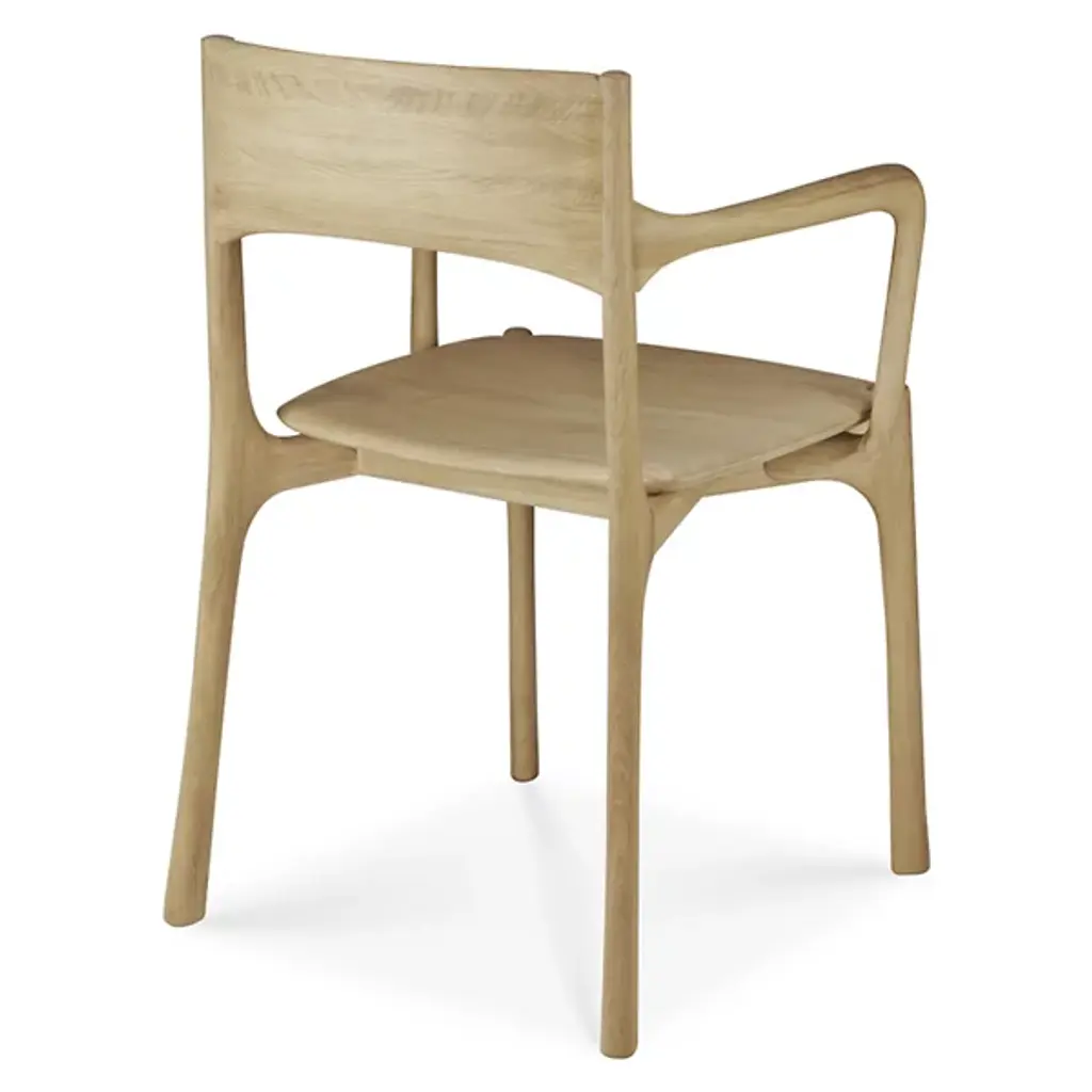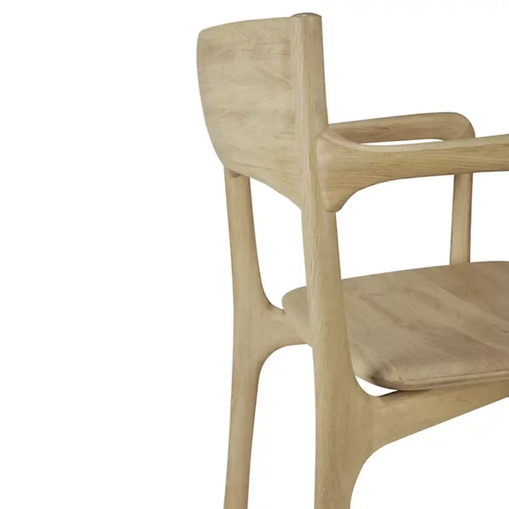 The PI Dining Arm Chair for Ethnicraft, created by Alain Van Havre, exhibits well-thought-out woodworking. Each piece celebrates oak's natural properties through a hard wax oil finish. The curved back transitions smoothly into arms, creating natural support. Tapered legs connect to the seat through precise joinery. The chair balances sturdy construction with nimble proportions. Hand-finishing highlights wood grain patterns unique to each piece. This seating solution proves that utility need not sacrifice grace.