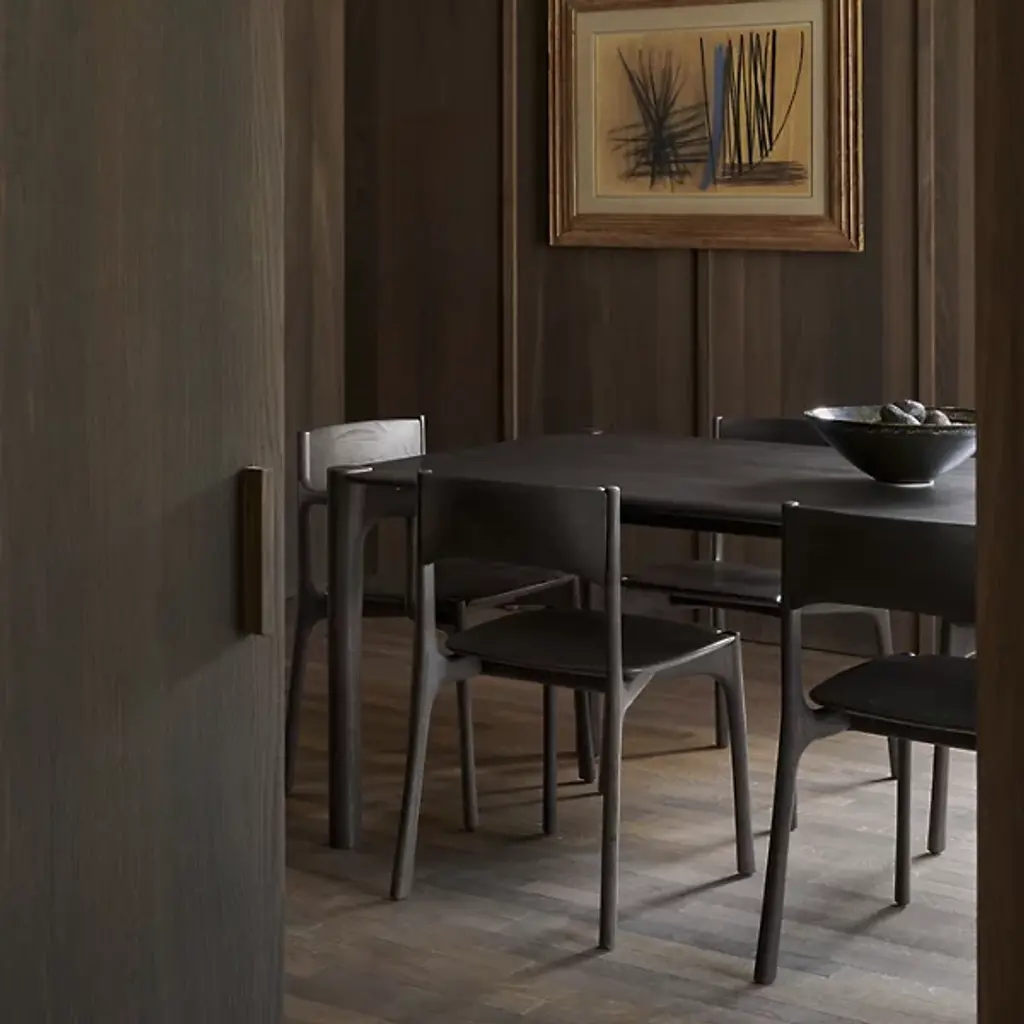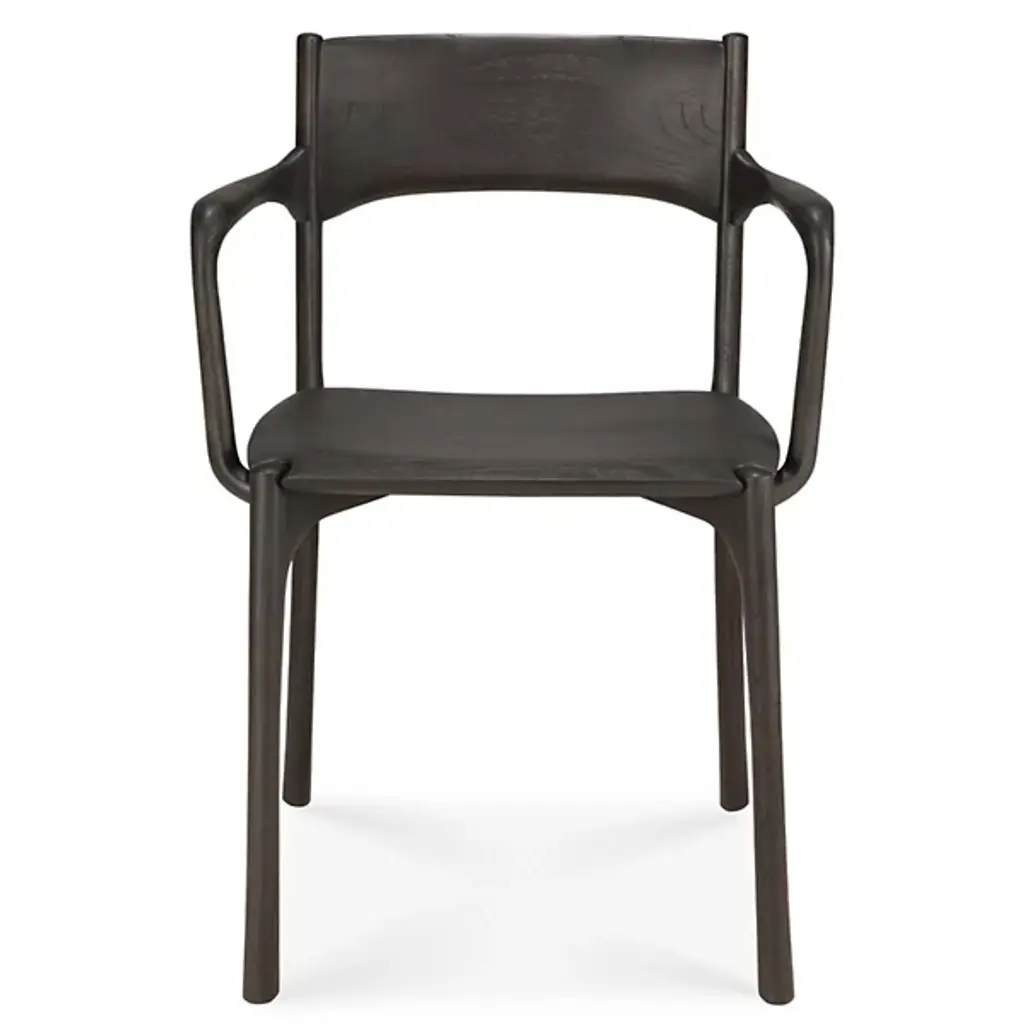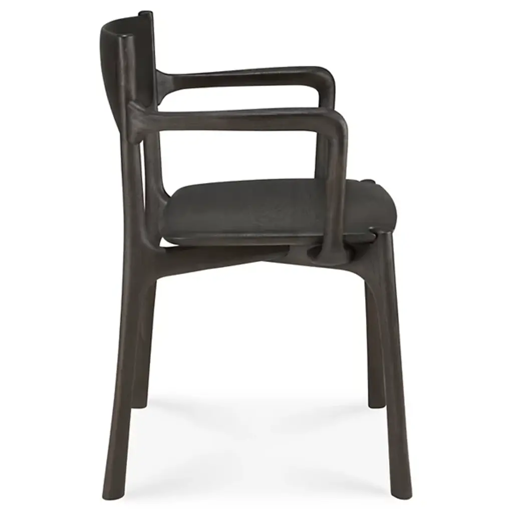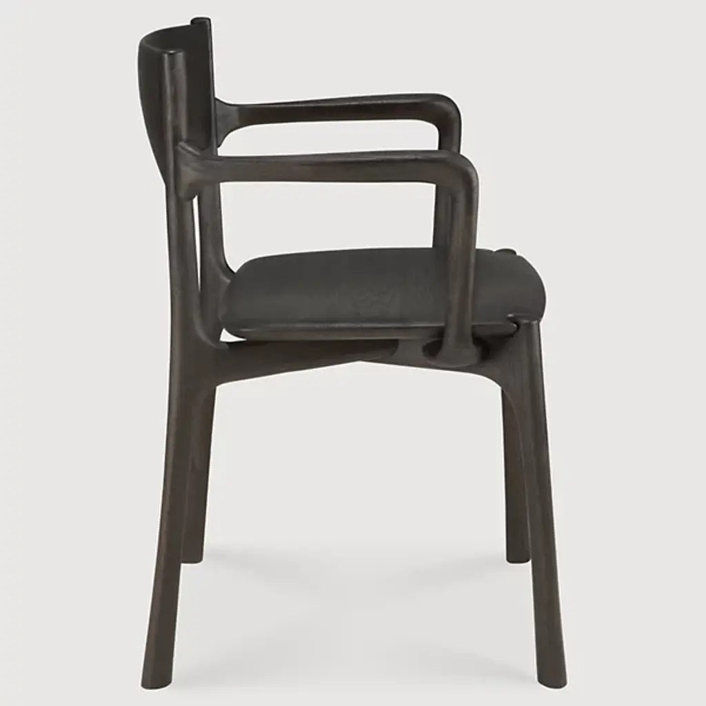 The PI Dining Arm Chair for Ethnicraft, created by Alain Van Havre, exhibits well-thought-out woodworking. Each piece celebrates oak's natural properties through a hard wax oil finish. The curved back transitions smoothly into arms, creating natural support. Tapered legs connect to the seat through precise joinery. The chair balances sturdy construction with nimble proportions. Hand-finishing highlights wood grain patterns unique to each piece. This seating solution proves that utility need not sacrifice grace.