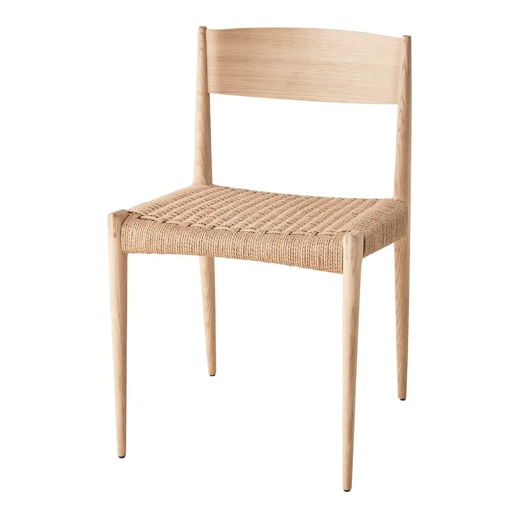 As a furniture designer, Poul Cadovius was mostly known for his iconic shelving systems, like the ROYAL SYSTEM® from 1948. But with the launch of the dining chair PIA CHAIR in 1959, he could also add the title chair designer to the CV. He wanted to create a chair in the spirit of the time, inspired by other design chairs of the fifties, but lighter and more "petite", both in physical weight and in design expression. The chair was developed on a "less is more" concept, with focus on the least possible material consumption, still maintaining a high level of details and excellent comfort. The thin, conical-shaped solid wooden legs give a light visual expression, which is further emphasized by two fine details; the hand-sanded rounding at the top of the back legs, and the finger joined front legs. The seat is made of hand-woven paper cordel, and the backrest is moulded, which gives an optimal seating comfort. It takes two hours just to hand-weave the seat, so the making of the chair is a time-consuming process which requires patience and high accuracy.