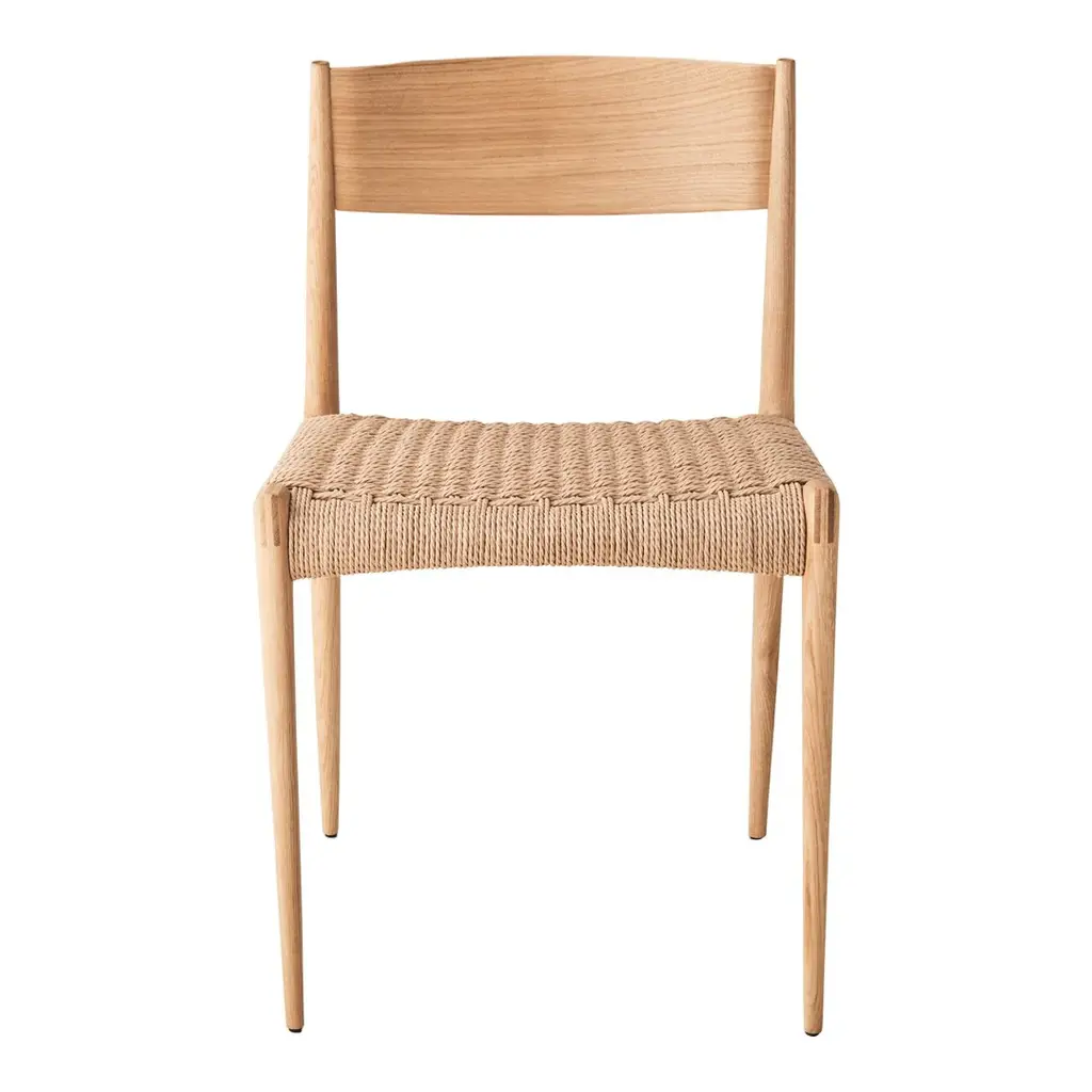 As a furniture designer, Poul Cadovius was mostly known for his iconic shelving systems, like the ROYAL SYSTEM® from 1948. But with the launch of the dining chair PIA CHAIR in 1959, he could also add the title chair designer to the CV. He wanted to create a chair in the spirit of the time, inspired by other design chairs of the fifties, but lighter and more "petite", both in physical weight and in design expression. The chair was developed on a "less is more" concept, with focus on the least possible material consumption, still maintaining a high level of details and excellent comfort. The thin, conical-shaped solid wooden legs give a light visual expression, which is further emphasized by two fine details; the hand-sanded rounding at the top of the back legs, and the finger joined front legs. The seat is made of hand-woven paper cordel, and the backrest is moulded, which gives an optimal seating comfort. It takes two hours just to hand-weave the seat, so the making of the chair is a time-consuming process which requires patience and high accuracy.