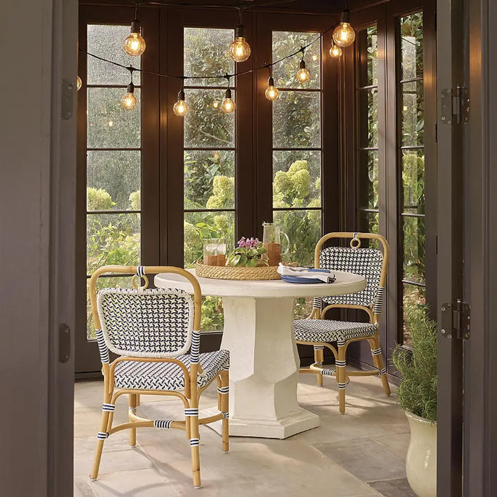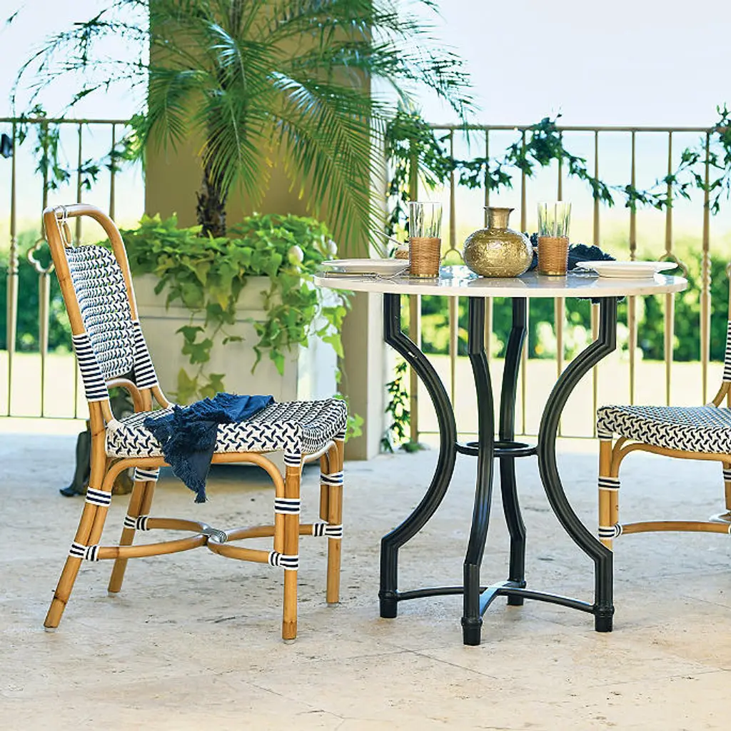 Whether used with a bistro table for intimate gatherings or paired with a dining table when extra seating is needed, our versatile Pia Rattan Bistro Chair is a beautiful addition to your outdoor space. Crafted from a natural rattan frame with a synthetic rattan weave. Natural rattan frame with a synthetic rattan weave Artisans weave wicker into intricate patterns you won't see anywhere else Premium wicker construction resists mold, mildew, fading and splintering Great for smaller spaces or as extra guest seating To preserve rattan's beauty and longevity during inclement weather, we recommend using a protective furniture cover or bringing it to a sheltered location Arrives assembled Imported A Frontgate exclusive. At Frontgate, our primary focus is quality. We guarantee that every product we sell will stand up to the supreme test – our customers' satisfaction. To learn more about our policies, visit our Shipping & Processing, Returns & Exchanges and Warranty & Price Guarantee pages.