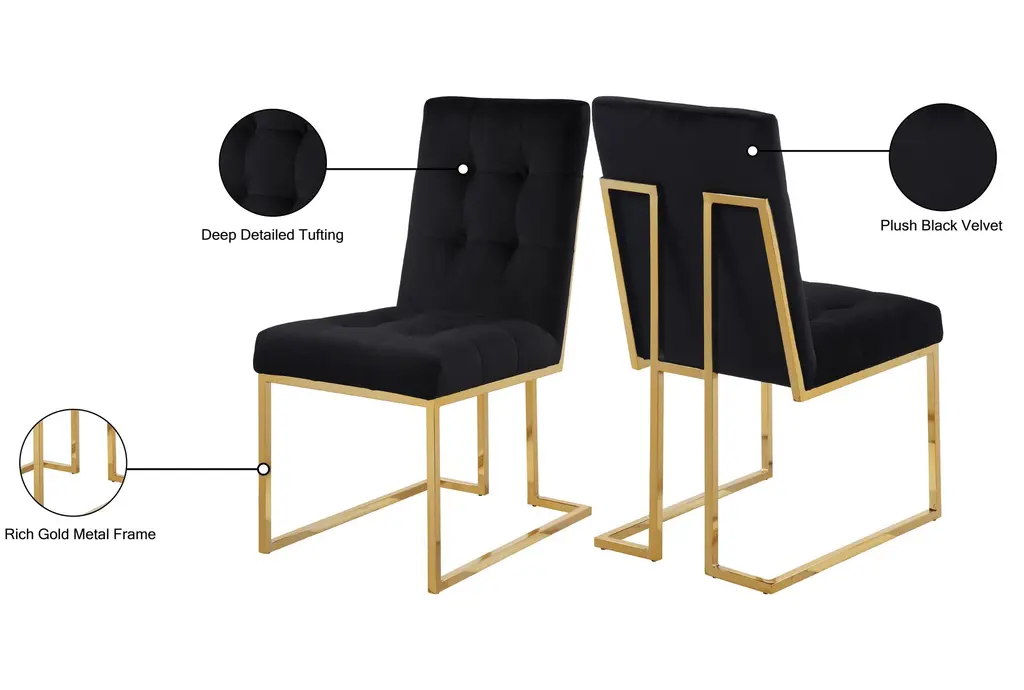 Pierre Black Velvet Dining Chair With Gold Finish Set Of 2