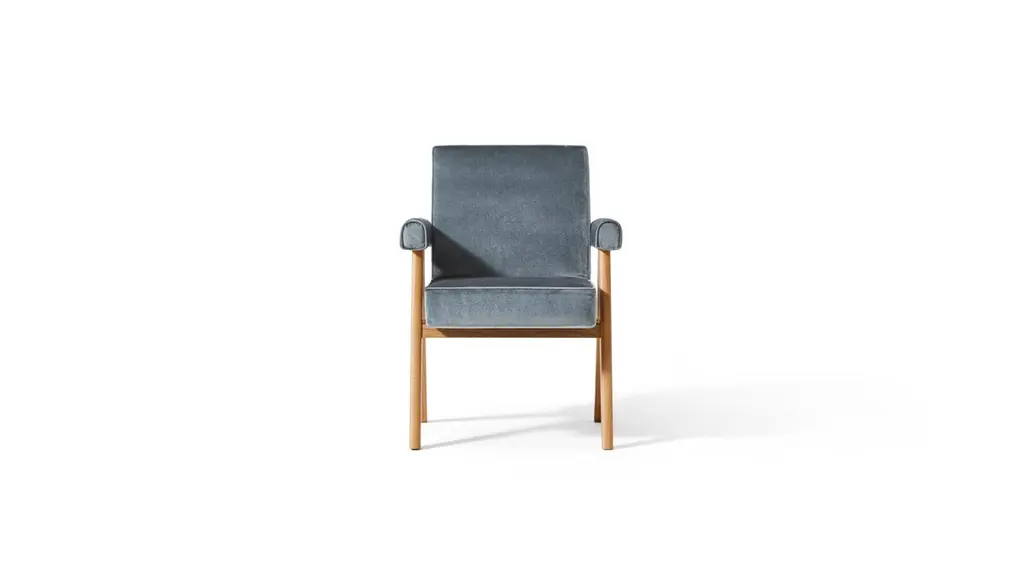 Committee chair designed by Pierre Jeanneret circa 1950 , relaunched in 2022.Manufactured by Cassina in Italy.The Committee chair is introduced in the original version and in a fresh, more versatile interpretation without armrests to fit seamlessly in the living and dining areas.The structure of the design armchair – available in the historic teak version and in natural oak or oak stained black – contrasts harmoniously with its soft padded parts for comfortable, supported seating. Part of the Hommage à Pierre Jeanneret tribute collection, the dining chair is known for its elegantly bold lines and solid wood structure and the iconic upside-down “V” lateral supports. These product is a tribute to Pierre Jeanneret, a key figure in the realization of Chandigarh.His experience in India lasted until the end of his days in 1967. His close and continuous contact with the local territory led him to combine essential forms with simple materials to create a meeting point between modern European ideals and the traditional Indian spirit.The Chandigarh project is considered Le Corbusier’s most mature work that summarises his poetics, technique and ideology, consistent with his will to research and contribute to the culture of architecture and design.Important information regarding images of products:Please note that some of the images show other colors and variations of the model, these images are only to present interior design proposals. The item that is selling is on the first image. Important information regarding colour(s) of products:Actual colours may vary. This is due to the fact that every computer monitor, laptop, tablet and phone screen has a different capability to display colours and that everyone sees these colours differently. We try to edit our photos to show all of our products as life-like as possible, but please understand the actual colour may vary slightly from your monitorAbout the designer:Though overshadowed by his cousin Le Corbusier, Pierre Jeanneret was a visionary of modernist architecture and design. Together, the pair pioneered a new aesthetic vocabulary that placed function and order over embellishment—Jeanneret’s work imbuing the strict geometry of modernism with energetic diagonals and lighter materials like cane and wood. A consistent innovator, he collaborated with Charlotte Perriand on experiments in aluminum and wood, and developed prefabricated housing with Jean Prouvé. In the early 1950s Jeanneret joined his cousin in Chandigarh, India, where they embarked on a massive urban-planning project, laying out the city and designing low-cost buildings and furniture. Though Corbusier abandoned the project halfway through, Jeanneret remained for 15 years as the project’s chief architect. The city remains a masterpiece of the modern vision.About the manufacturer:In a continuing dialogue between past, present, and future, Cassina has created the I Maestri collection, revisiting furnishing designs by the twentieth century’s best-known architects, including Le Corbusier, Pierre Jeanneret, Charlotte Perriand, Charles Rennie Mackintosh, Gerrit Thomas Rietveld, Franco Albini, Frank Lloyd Wright and Marco Zanuso. While the designs and functional concepts have been precisely preserved, the models have been manufactured using evolved technology. This is also the company that has manufactured iconic pieces of contemporary design from the 50’s to the present day, ideated by some of the most important international designers. Today Cassina continues to look to the future of design with audacious, passionate curiosity and an open, holistic approach. It affirms its exclusive ability to furnish a home’s living and dining spaces completely and iconically with The Cassina Perspective: a concept, a philosophy, an informed, futuristic thought. A detailed, expansive horizon of combinations; when placed together, the products have an innovative soul and the modern icons create authentic, welcoming, personal atmospheres involved in a conversation dominated by a code of design excellence, formal sensitive awareness, solidity and cultural authority.