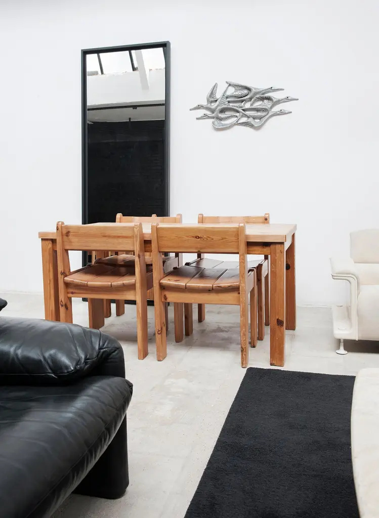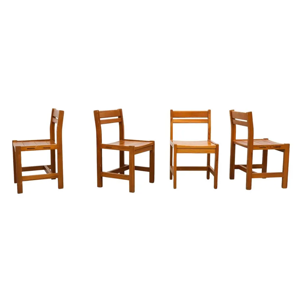 Explore this remarkable set of four Pine Dining Chairs by Ate Van Apeldoorn from the 1970s. Each chair features a substantial and wide Brutalist design, all in good original vintage condition. These chairs show wear consistent with their age, enhancing their unique character.Ideal for a variety of interior styles, this set offers both striking design and surprising comfort. Make a bold statement with these iconic 1970s pieces, perfect for revitalizing your space!