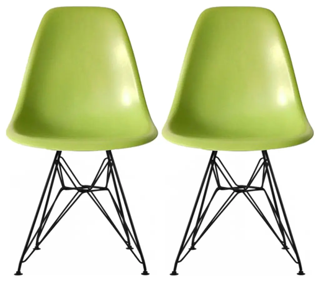 Plastic Chair With Black Eiffel Wire Legs Modern Dining Chair, Set Of 2, Green
