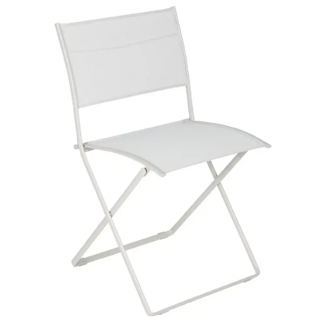 Plain in form but contemporary in style, the Plein Air Stereo OTF Side Chair - Set of 2 by Fermob holds true to modern design standards. This folding side chair is constructed with an oval Steel frame, seat and backrest wrapped in an outdoor technical fabric: tearproof and resistant to stains and molds. Sit for hours in this comfortable chair, and you’ll find that the material retains its shape. Great for outdoor use, fold out this chair to provide extra seating at a barbeque, pool party, or outside event.