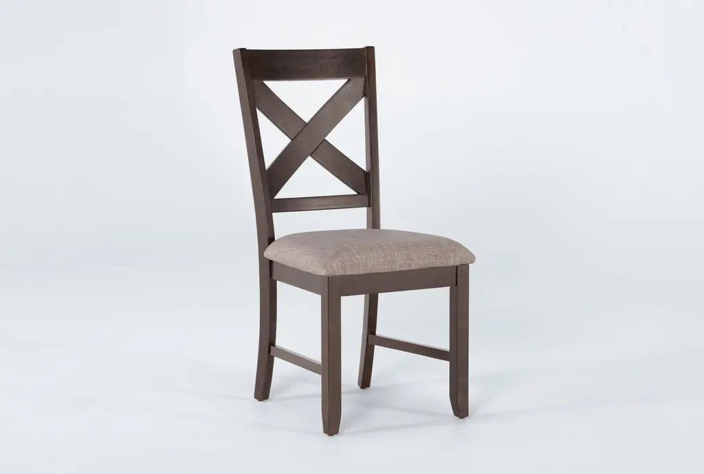 Pollie Brown Farmhouse X Back Wood Fabric +Upholstered Seat Dining Side Chair | High Back | Armless