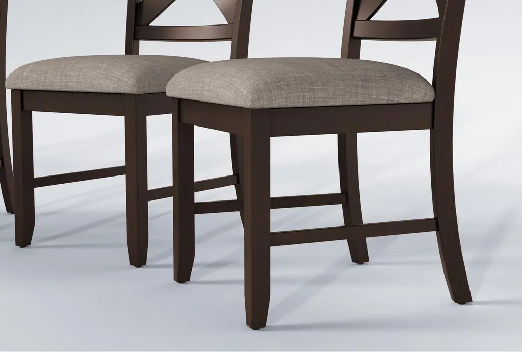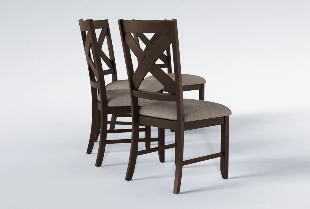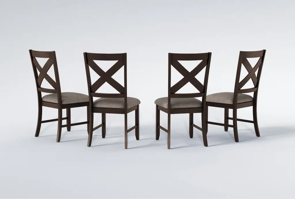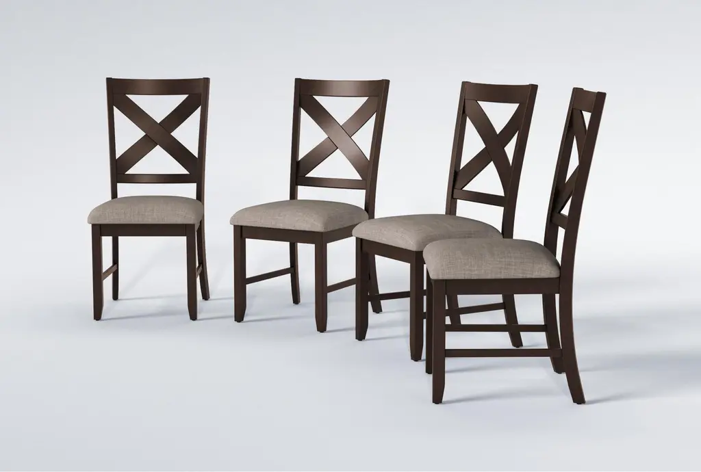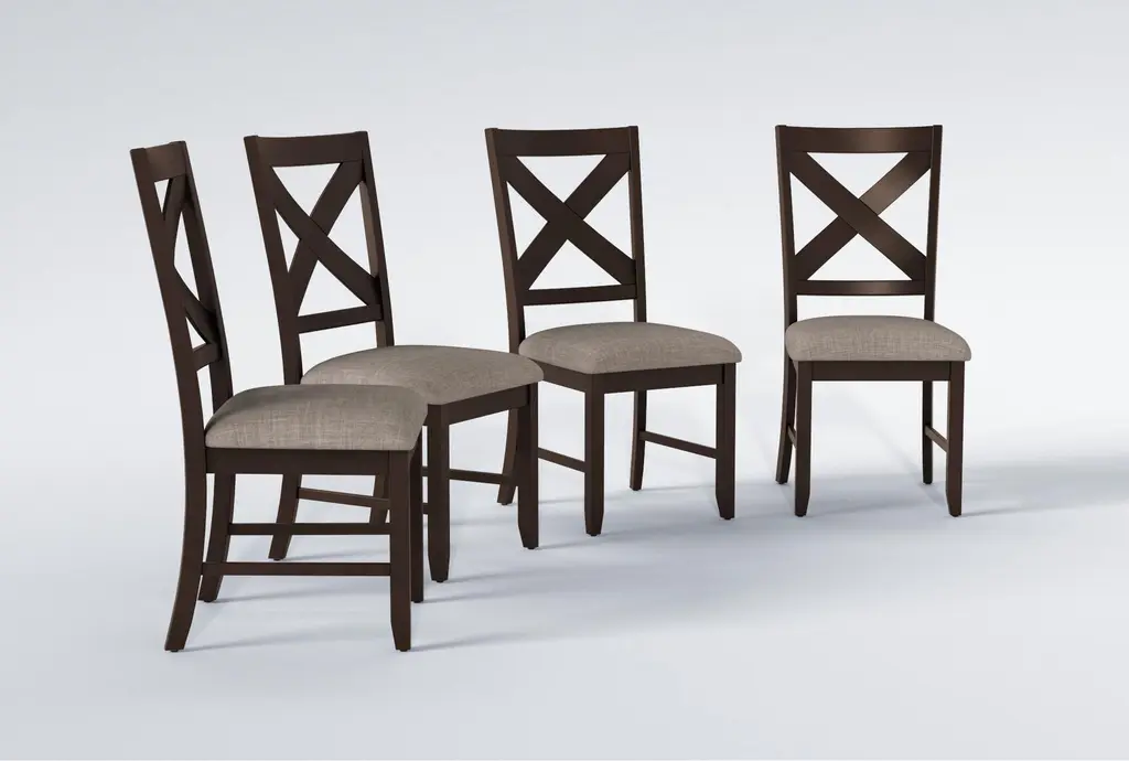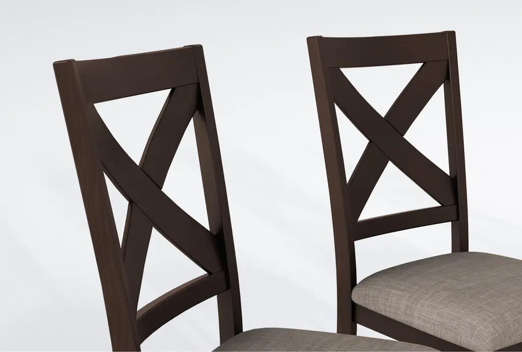 Pollie Brown Farmhouse X Back Wood Fabric +Upholstered Seat Dining Side Chair Set Of 4 | High Back | Armless