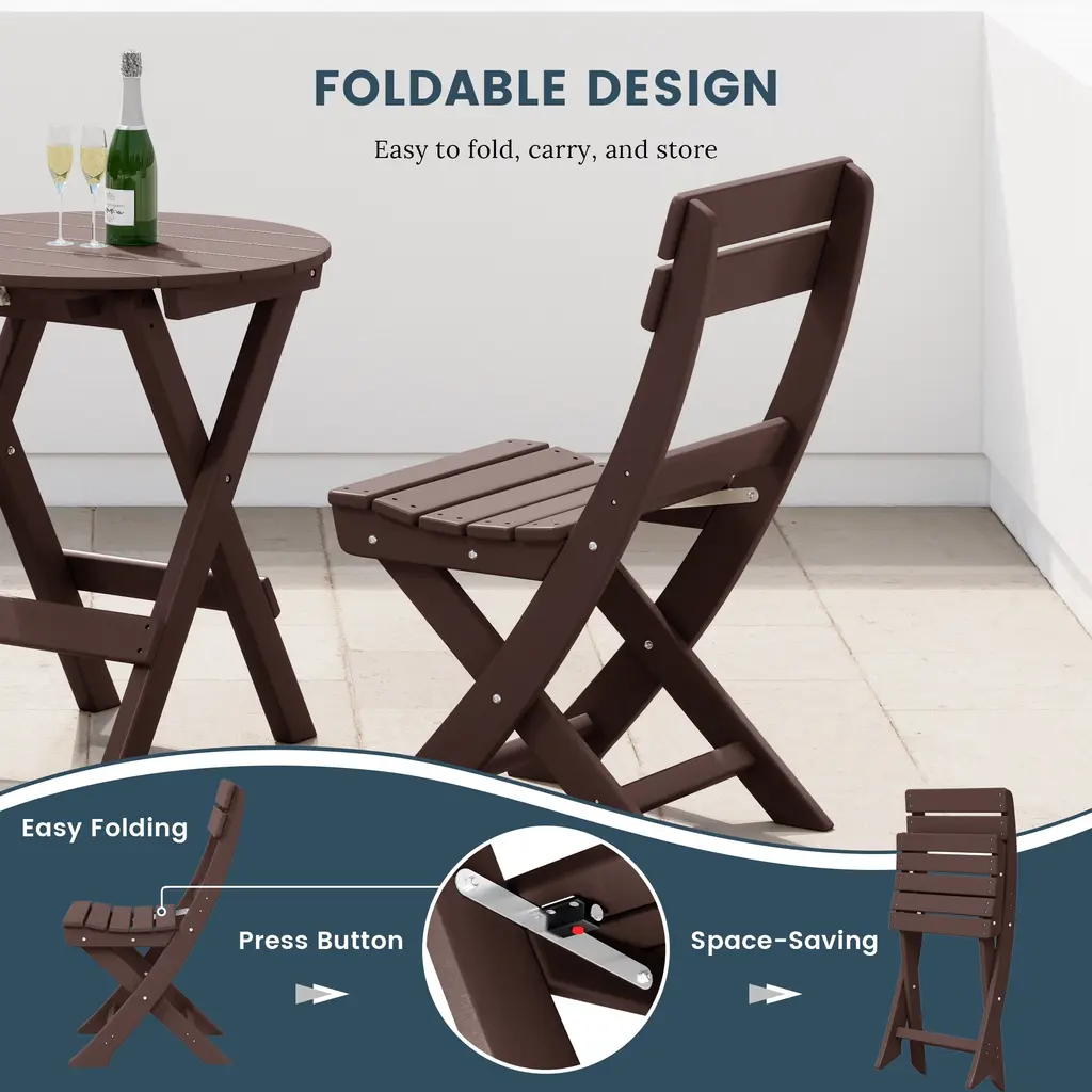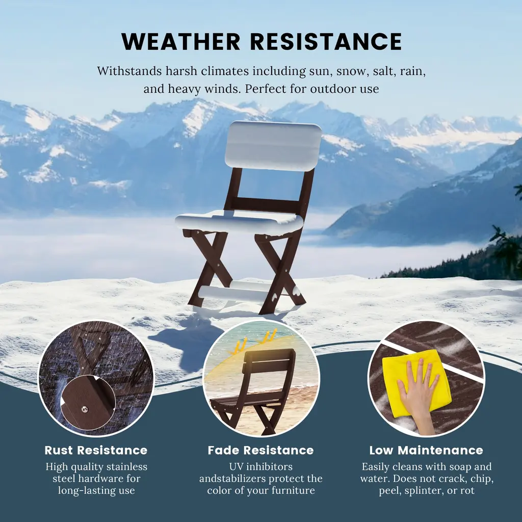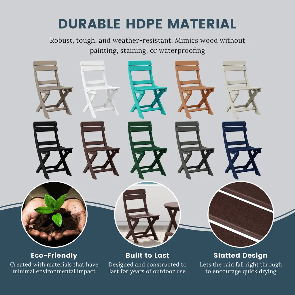 Whether it's a romantic date on the beach or just a casual day out in the backyard, this portable folding dining chair is the perfect choice for any occasion. Made with a durable HDPE all-weather material that is resilient to the outdoors, its UV and fade-resistant properties are ideal for protection against the outdoors. Easy to fold when not in use saves plenty of storage space when folded and is easy to move as well. Stable design with the X-frame leg design that provides the legs better stability to the floor to reduce wobbling.While we strive to accurately represent product colors, please be aware that actual colors may vary slightly due to individual screen settings and lighting conditions. FeaturesDetails: