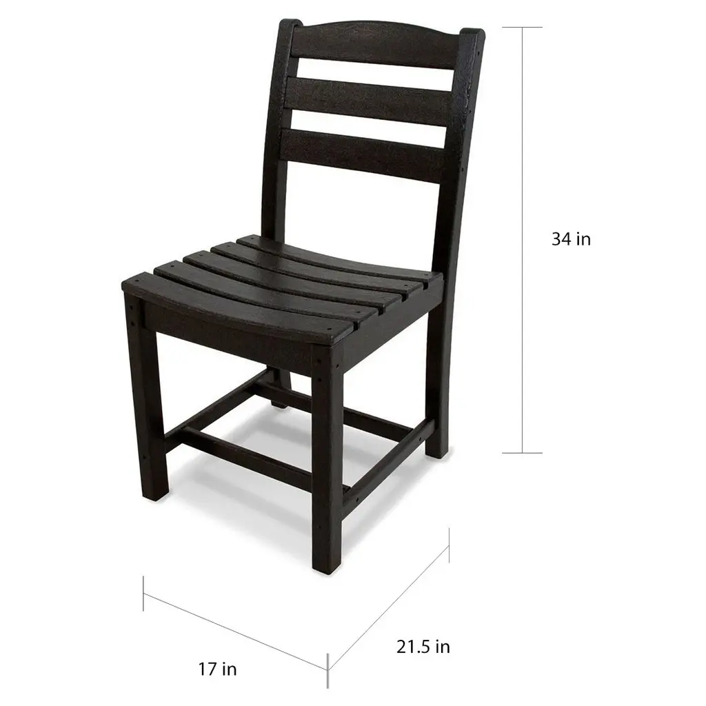Upgrade your outdoor dining experience with the POLYWOOD La Casa Cafe Dining Side Chair. Made with eco-friendly, weather-resistant materials that prevent corrosion and cracking, this chair is backed by a 20-year warranty for your peace of mind. With a sophisticated design and long-lasting durability, this chair is the perfect addition to your outdoor living area.Features:Other sections: