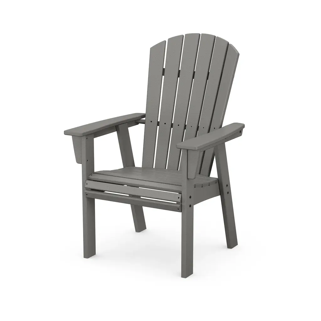 Sit back and relax in the oversized seat of the Nautical Adirondack Dining Chair. With a curved back for comfort, this casual all-weather dining chair will bring a touch of laid back beach style to any outdoor space. This chair pairs quite well with any POLYWOOD Nautical Dining Tables, which are available in a variety of sizes and shapes.