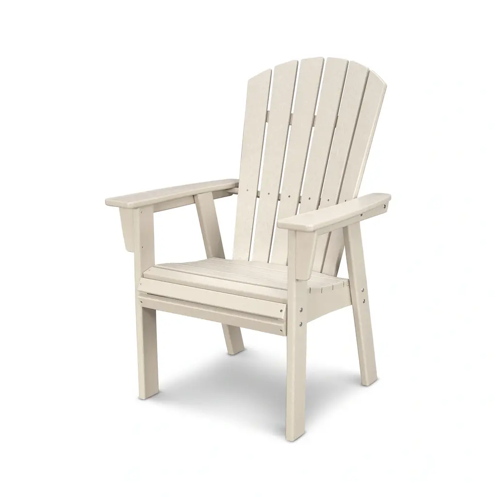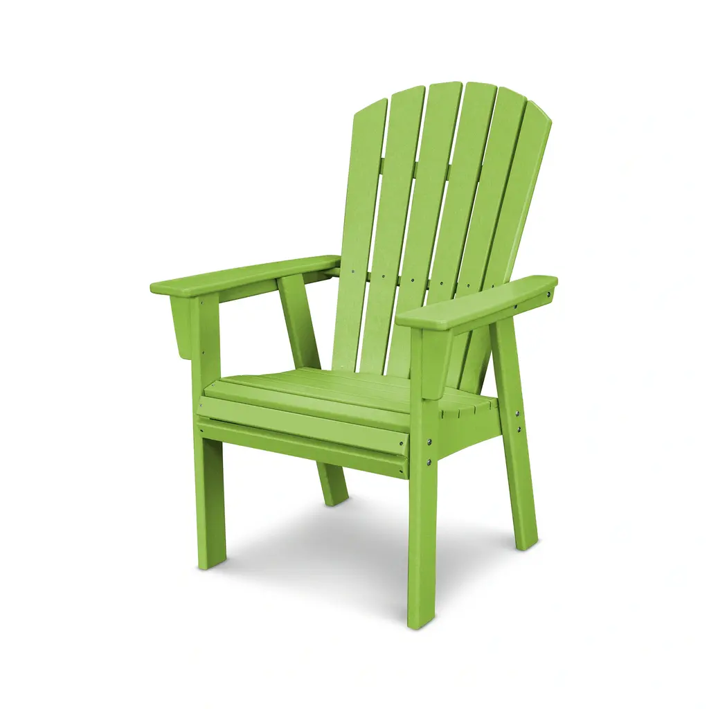 Sit back and relax in the oversized seat of the Nautical Adirondack Dining Chair. With a curved back for comfort, this casual all-weather dining chair will bring a touch of laid back beach style to any outdoor space. This chair pairs quite well with any POLYWOOD Nautical Dining Tables, which are available in a variety of sizes and shapes.