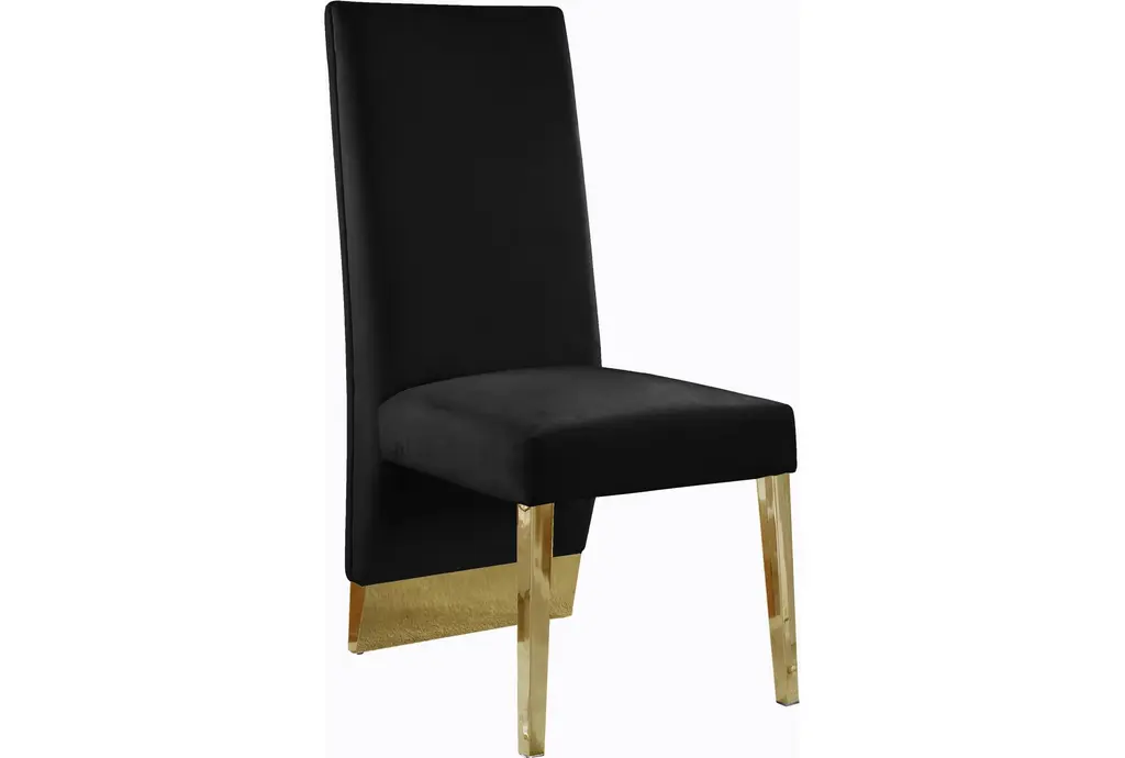 Porsha Black Velvet Dining Chair With Gold Finish Set Of 2