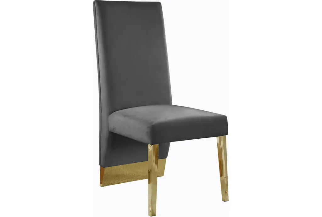 Porsha Grey Velvet Dining Chair With Gold Finish Set Of 2