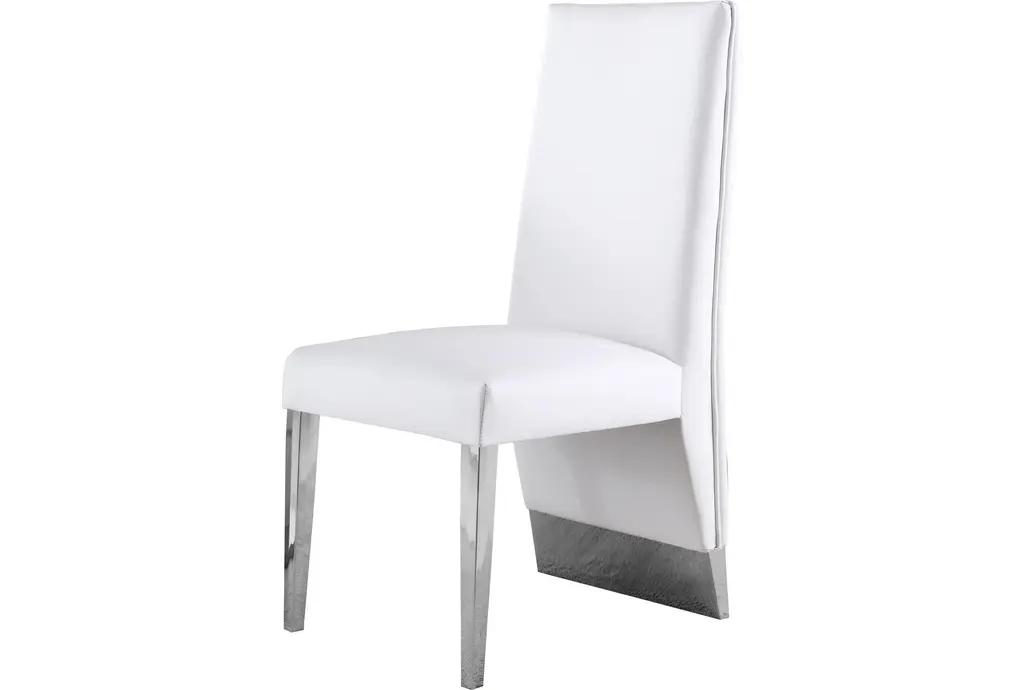 Porsha White Vegan Faux Leather Dining Chair With Chrome Finish Set Of 2