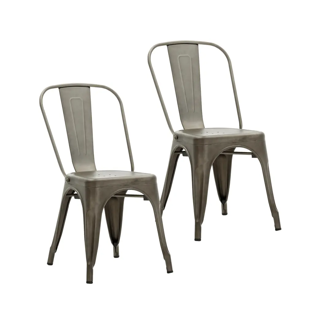 Porthos Home Sagi metal dining chairs - classic style for both indoors and outdoors From your dining room to sunny balcony, it's easy to see how the Sagi metal chair can fit in.Electroplated metal for more durability Crafted from electroplated metal which makes the Sagi more resistant to the elements if you use it outdoors, this metal dining set is all about offering commercial-grade durability with timeless style. Whether you're looking to spiff up your home dining area with an industrial flourish, or include heavy-duty metal chairs for your favorite breakfast nook on the patio, the Sagi will fit the bill.Easily stackable With their elegant tapered legs and rounded back frames, these metal dining chairs are a breeze to stack up and stow away. Need more chairs for a party or gathering immediately? Bring on the Sagi metal chair. If the weather has turned too chilly to be sitting on your balcony or patio, simply bring in the metal dining chairs, stack them up and put them away till the warm season rolls around. Are you impressed by the all-season versatility of this metal chairs set of 2 yet?Thoughtful details Don't worry about the metal chair leaving unsightly scratch marks on your beloved flooring. The Sagi comes with protective leg caps so you can use it with absolute peace of mind on every type of flooring.Features of Porthos Home Sagi metal dining chairs: • Timeless, classic design • Crafted from long-lasting electroplated metal • Stackable design for easy storage • Great for both indoors and outdoors • Sold in sets of 2 • Dimensions: (height) 33.46 x (width) 17.91 x (length/depth) 17.72 inches • Weight: 10.36 lbs • Simple assembly required Features