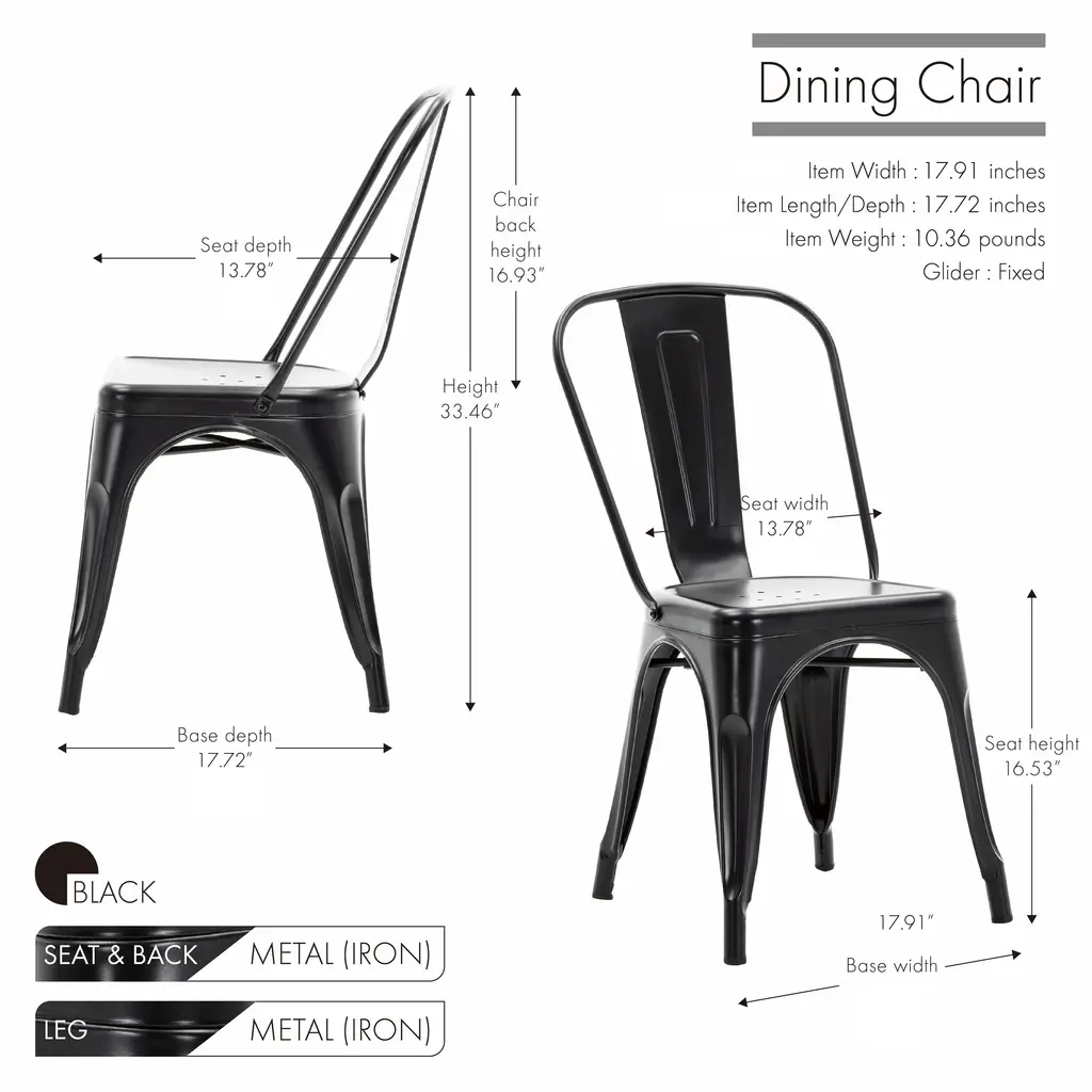 Porthos Home Sagi Metal Dining Chairs Set Of 2, Easily Stackable - Black