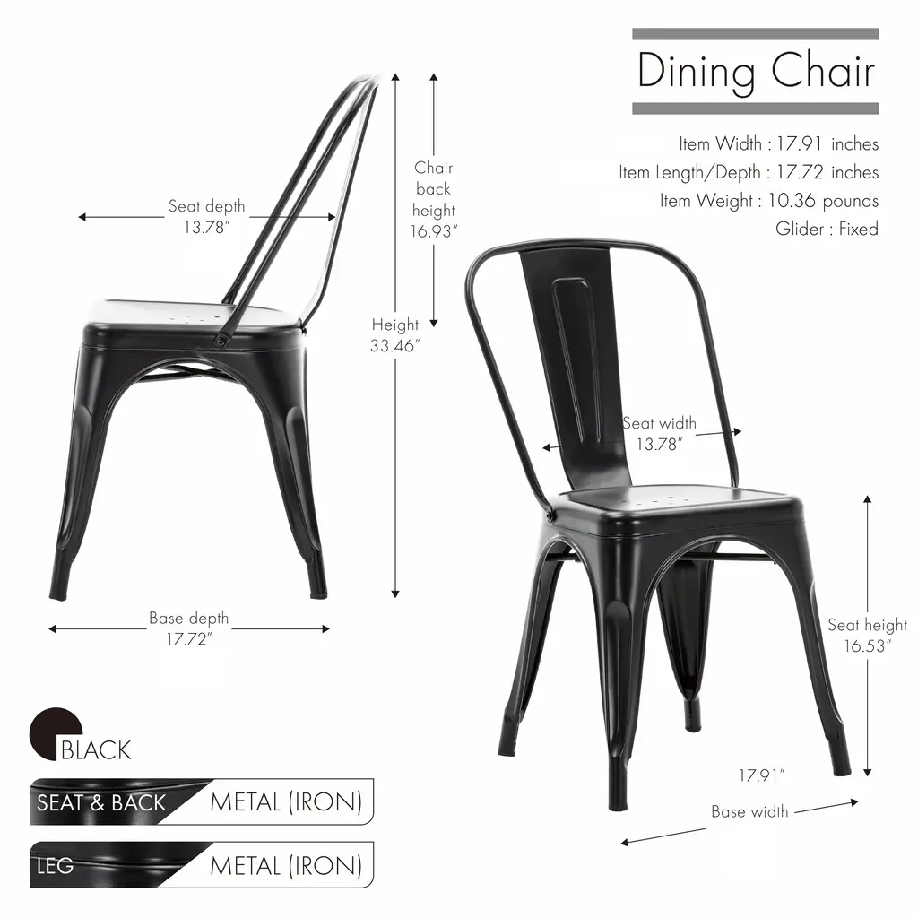 Porthos Home Sagi metal dining chairs - classic style for both indoors and outdoors From your dining room to sunny balcony, it's easy to see how the Sagi metal chair can fit in.Electroplated metal for more durability Crafted from electroplated metal which makes the Sagi more resistant to the elements if you use it outdoors, this metal dining set is all about offering commercial-grade durability with timeless style. Whether you're looking to spiff up your home dining area with an industrial flourish, or include heavy-duty metal chairs for your favorite breakfast nook on the patio, the Sagi will fit the bill.Easily stackable With their elegant tapered legs and rounded back frames, these metal dining chairs are a breeze to stack up and stow away. Need more chairs for a party or gathering immediately? Bring on the Sagi metal chair. If the weather has turned too chilly to be sitting on your balcony or patio, simply bring in the metal dining chairs, stack them up and put them away till the warm season rolls around. Are you impressed by the all-season versatility of this metal chairs set of 2 yet?Thoughtful details Don't worry about the metal chair leaving unsightly scratch marks on your beloved flooring. The Sagi comes with protective leg caps so you can use it with absolute peace of mind on every type of flooring.Features of Porthos Home Sagi metal dining chairs: • Timeless, classic design • Crafted from long-lasting electroplated metal • Stackable design for easy storage • Great for both indoors and outdoors • Sold in sets of 2 • Dimensions: (height) 33.46 x (width) 17.91 x (length/depth) 17.72 inches • Weight: 10.36 lbs • Simple assembly required Features